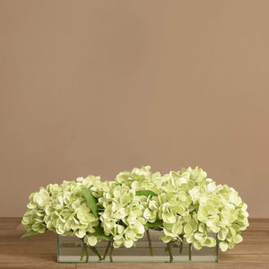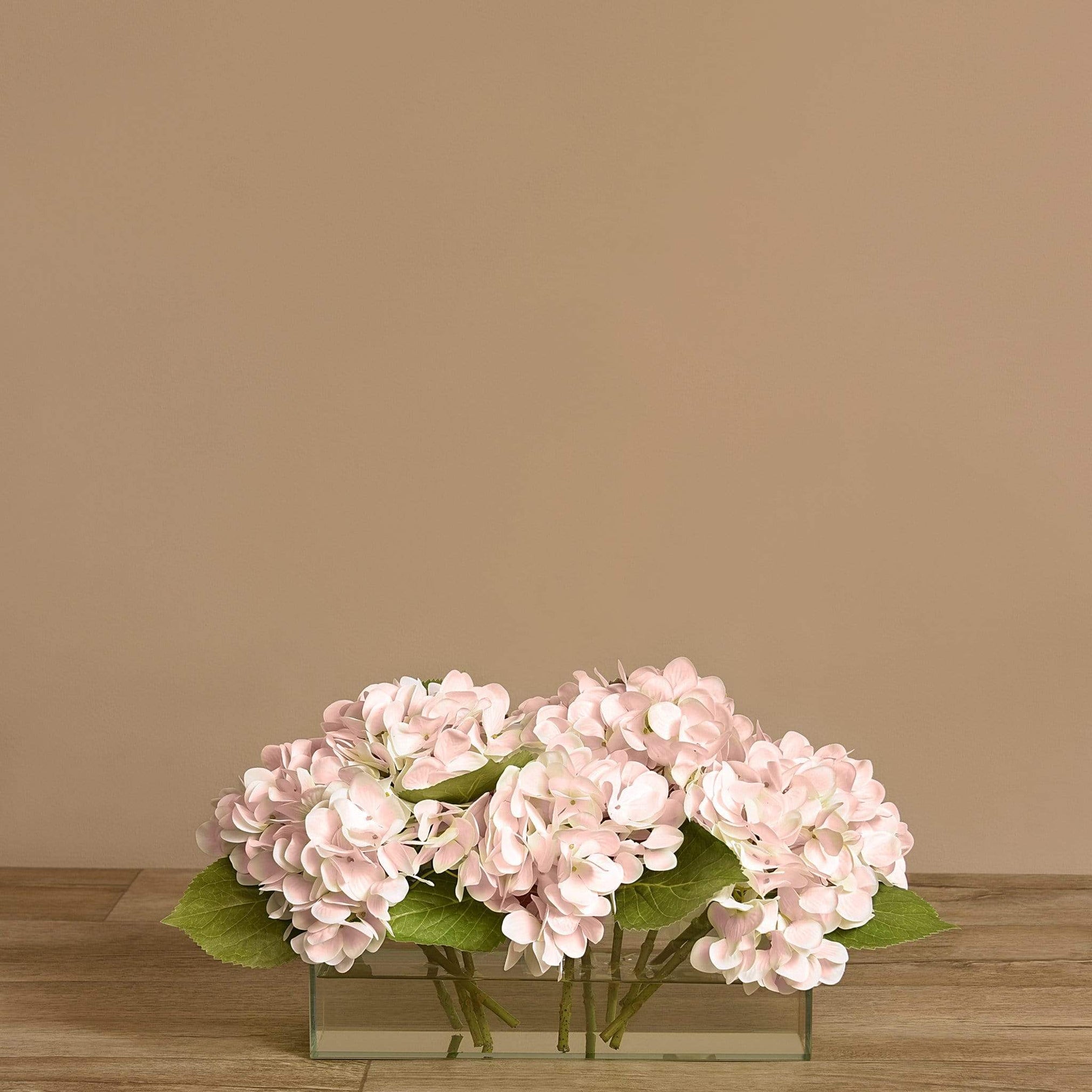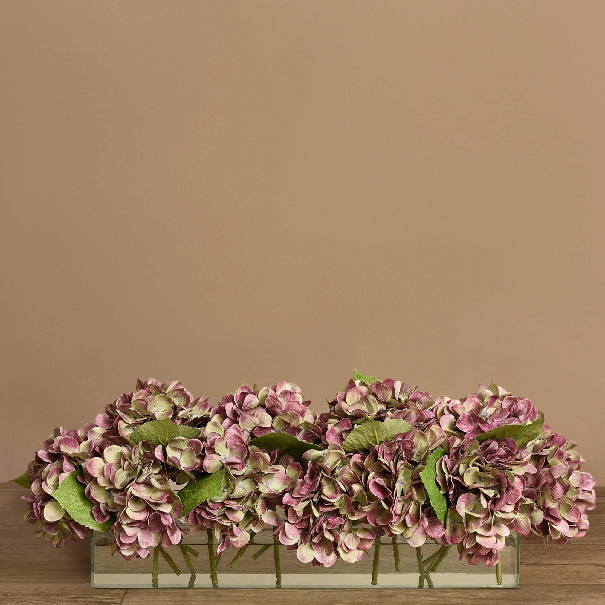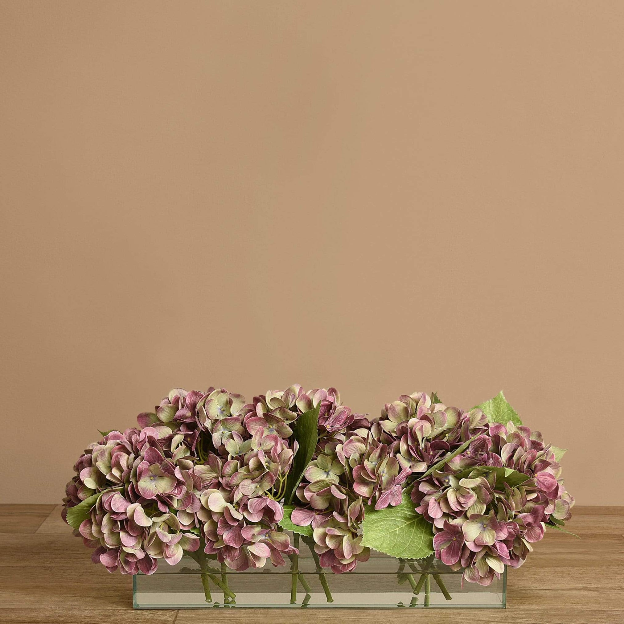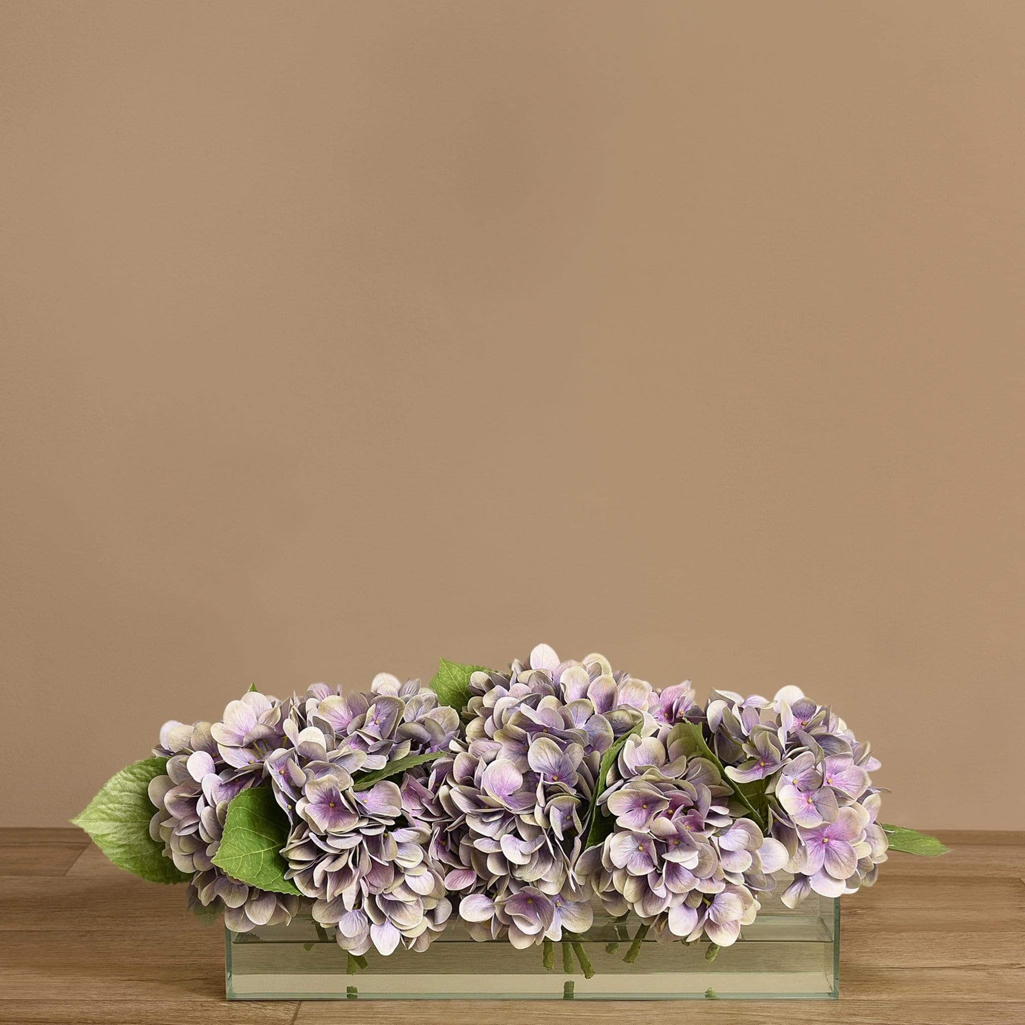 هذه الباقة من زهور الهدرانج الصناعية البديعة، رمز الرقة والأخلاق الرفيعة، تملأ منزلك بسحر لا ينتهي. الباقة مصممة على أيدي خبراء في تنسيق الزهور لتتميز بمظهر وملمس طبيعيين لأقصى درجة، وهي تأتيك في مزهرية زجاجية مستطيلة تكمل أناقتها.