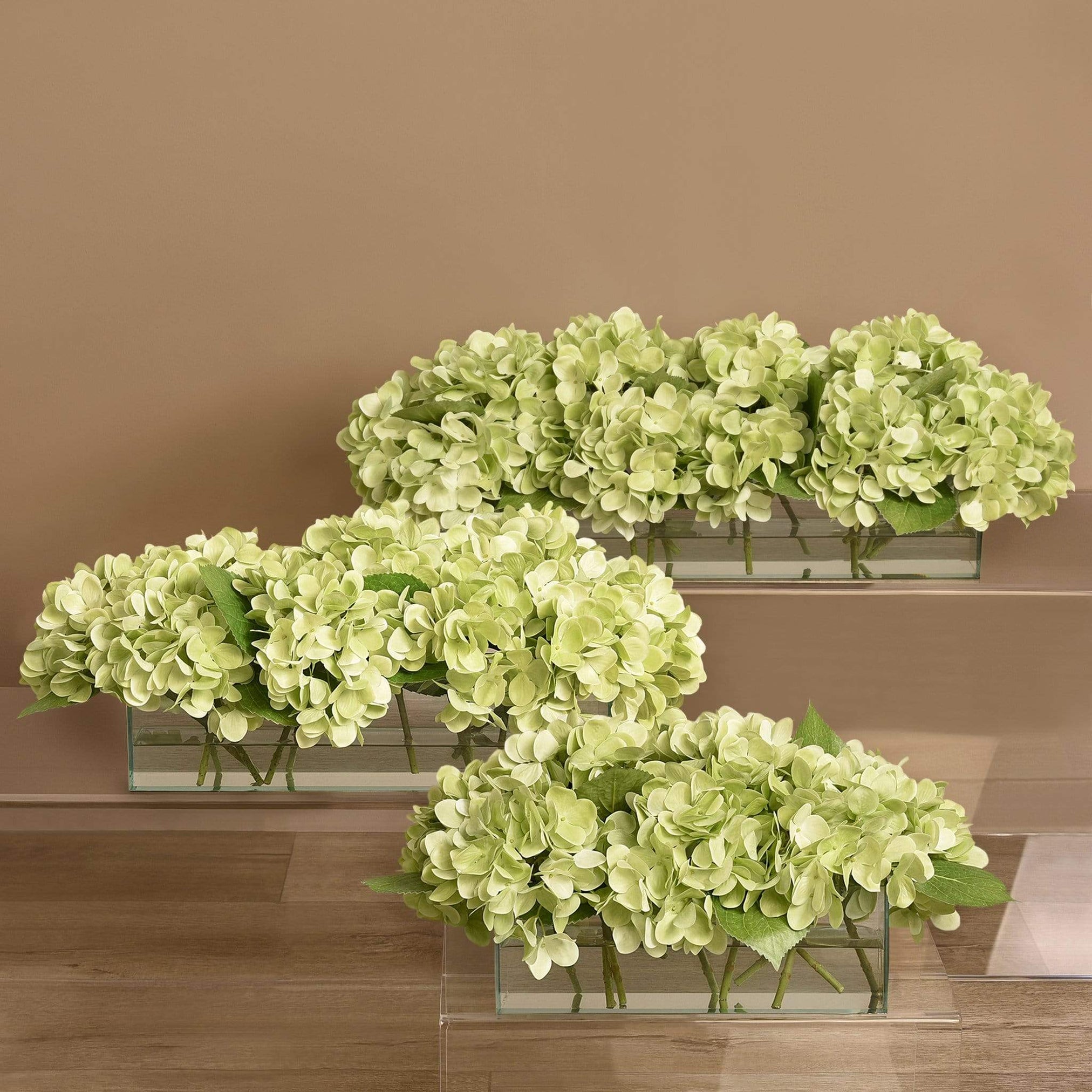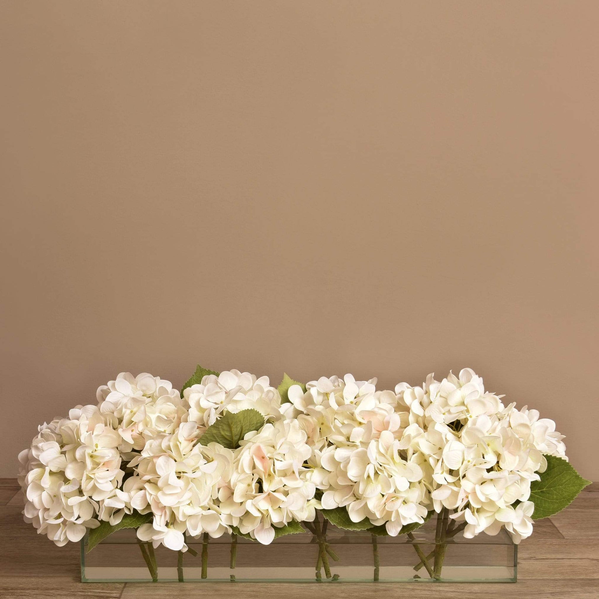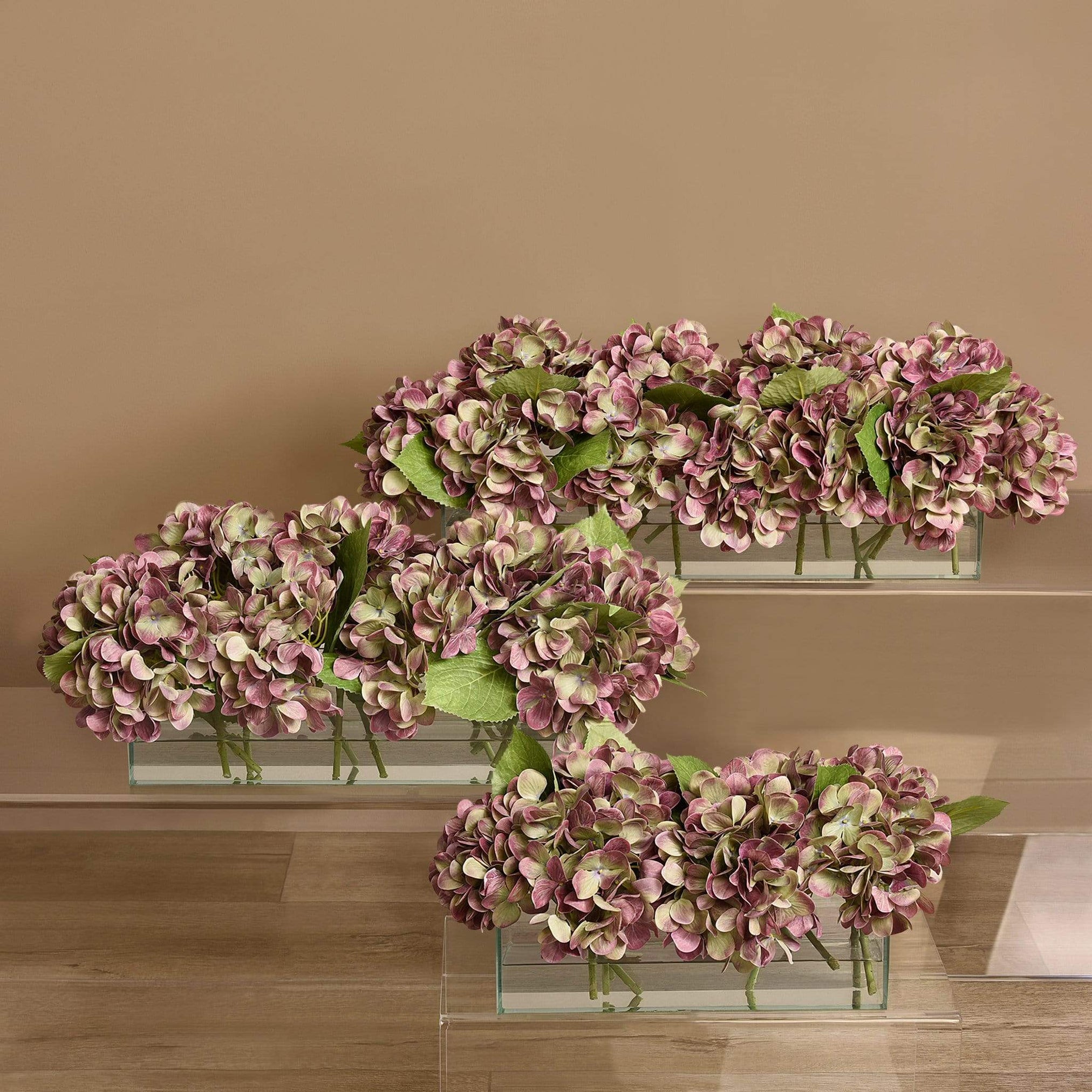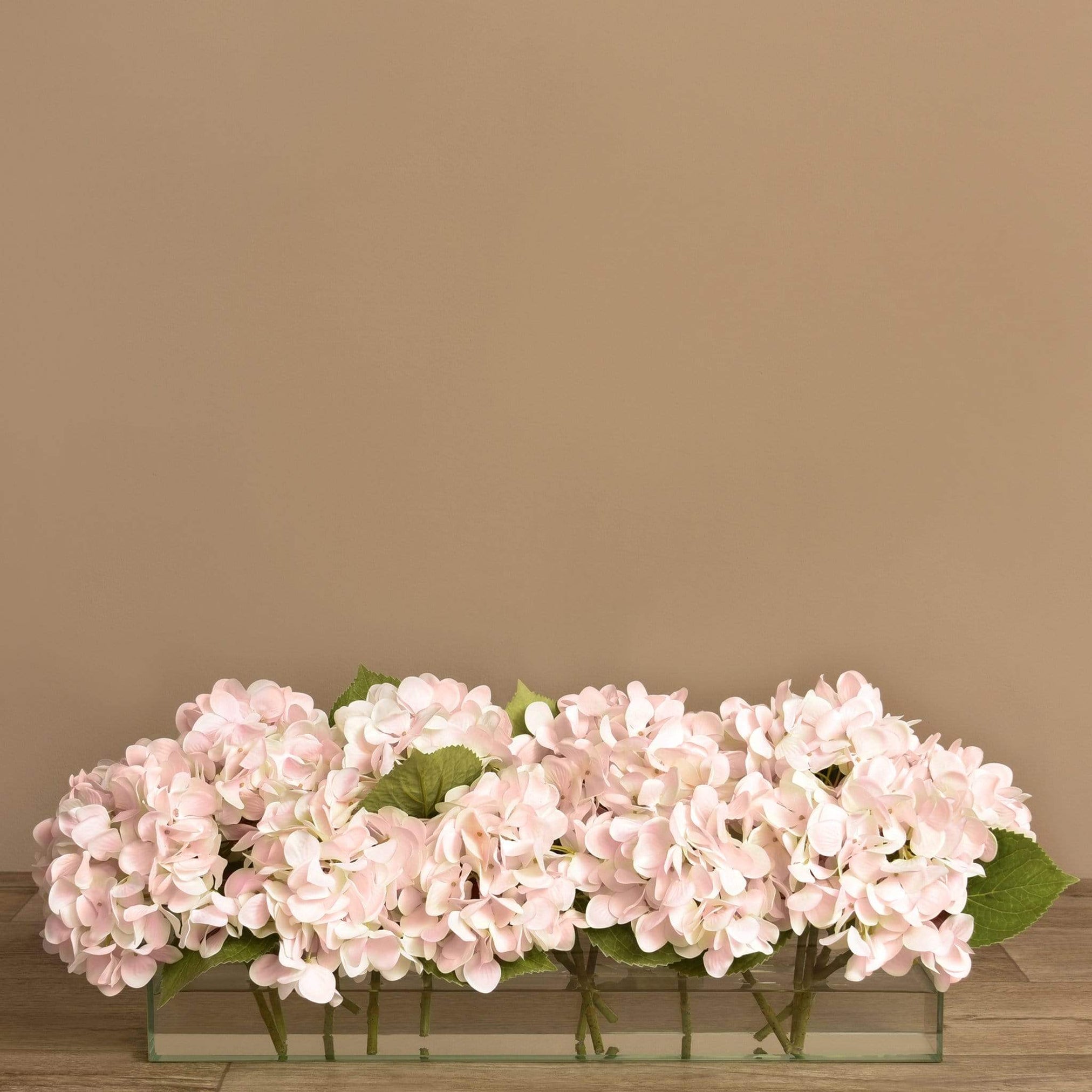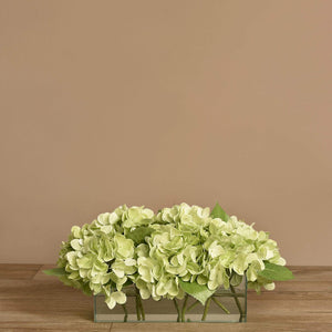 هذه الباقة من زهور الهدرانج الصناعية البديعة، رمز الرقة والأخلاق الرفيعة، تملأ منزلك بسحر لا ينتهي. الباقة مصممة على أيدي خبراء في تنسيق الزهور لتتميز بمظهر وملمس طبيعيين لأقصى درجة، وهي تأتيك في مزهرية زجاجية مستطيلة تكمل أناقتها.