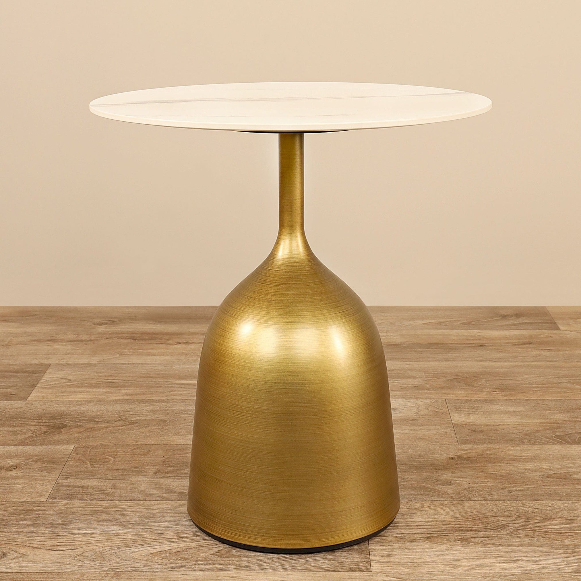 قاعدة معدنية لامعة تدعم السطح الحجري على هذه الطاولة الجانبية المذهلة. مثالية لإضفاء هواء ساحر على أي غرفة ، تشبه هذه الطاولة الجانبية قطعة من المجوهرات الرائعة التي تضيف لمسة نهائية مثالية إلى المظهر.