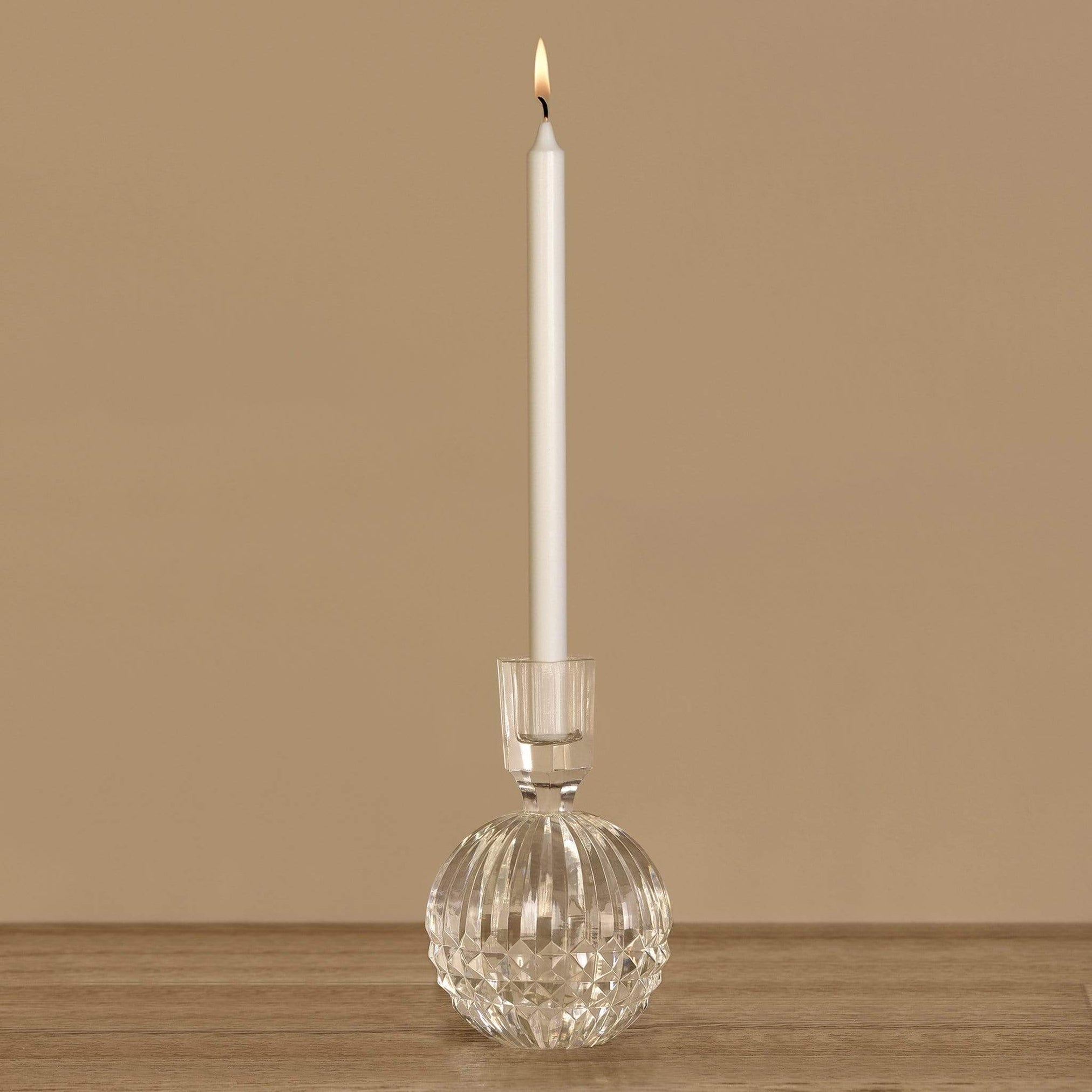 مصمم من الزجاج الصلب، يأتي حامل الشمعة هذا بتصميم مفلطح رائع لإضافة لمسة من التألق لأي مكان. مثالي بمفرده أو ضمن مجموعة من عدة حوامل شموع، يعد هذا الحامل الزجاجي الأنيق وسيلة سهلة لإضفاء جو خاص على أي مناسبة.