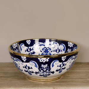 وعاء بتصميم كلاسيكي ساحر مزين بحواف ذهبية تمنحه طابعًا فريدًا. يمكنك استخدامه لتقديم الفواكه أو عرضه على أحد أرفف منزلك كقطعة ديكور تخطف الأبصار.