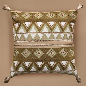 قم بتغيير من شكل أي منطقة جلوس مع هذه الوسادة المميزة. تصميمها المطرز باللون البني والأبيض والأخضر، والشرابات المزخرفة، والسحاب المغطى القوي يجعلها إضافة مثالية إلى أريكتك.
