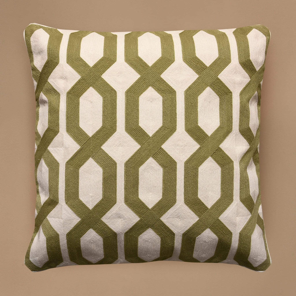 أضف الاهتمام إلى غرفة الجلوس الخاصة بك مع هذه الوسادة المربعة المزخرفة. بها نمط الأخضر والأبيض ، و سحابة مغطاة قوية، ونسيج قطني ناعم 100٪ سيشكل إضافة جميلة إلى أريكتك.
