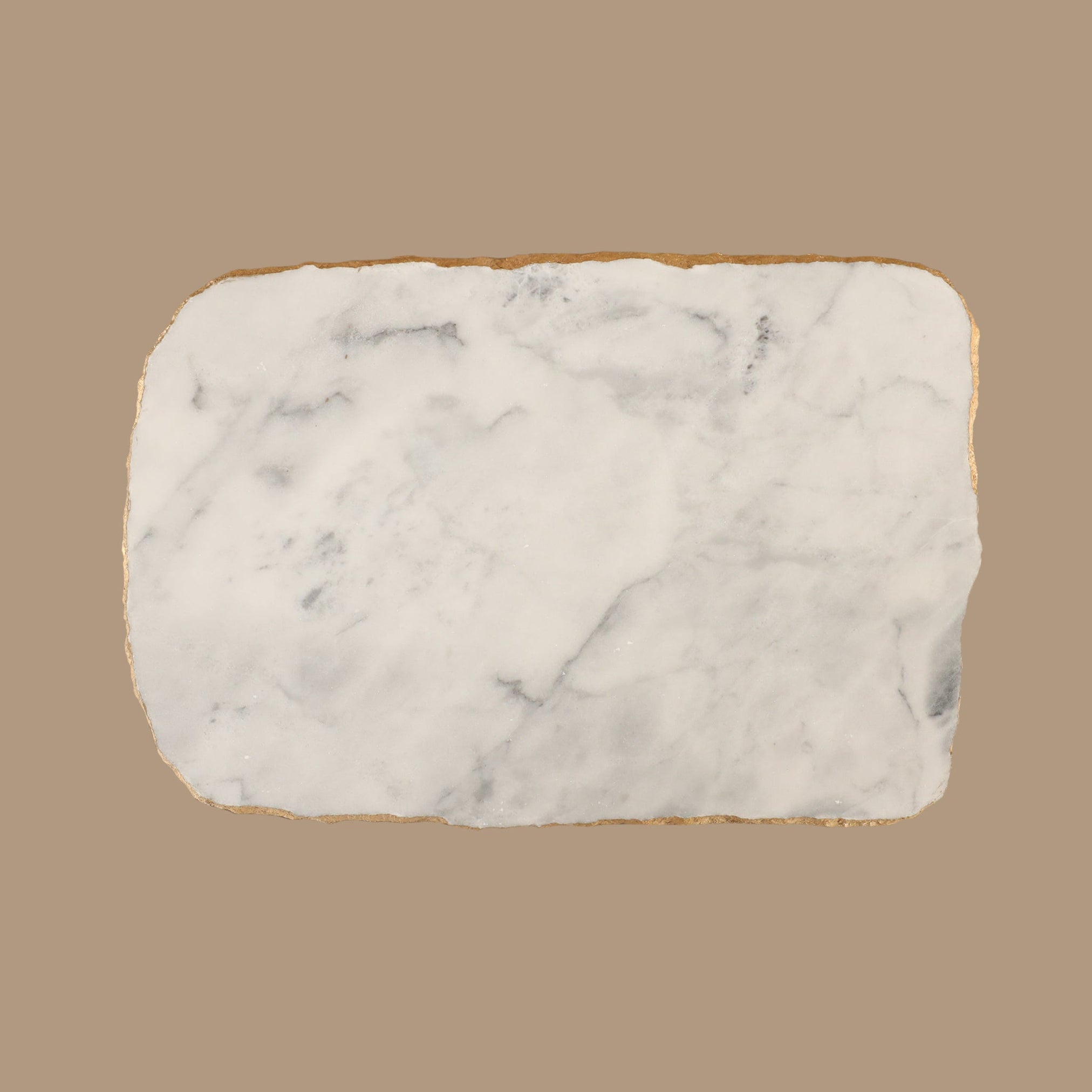 حافة غير مكتملة مزينة بالذهب تجعل هذه الصينية الرخامية البسيطة مميزة لمختلف الاستخدامات. مثالية لتقديم الأطعمة الشهية، كما يمكن استخدامها لعرض الإكسسوارات على منضدة الزينة أو المكتب أو الطاولة. بفضل تصميمها الفريد، تتناسب هذه الصينية مع العديد من أنماط الديكور الداخلي، مما يجعلها أيضًا هدية رائعة.