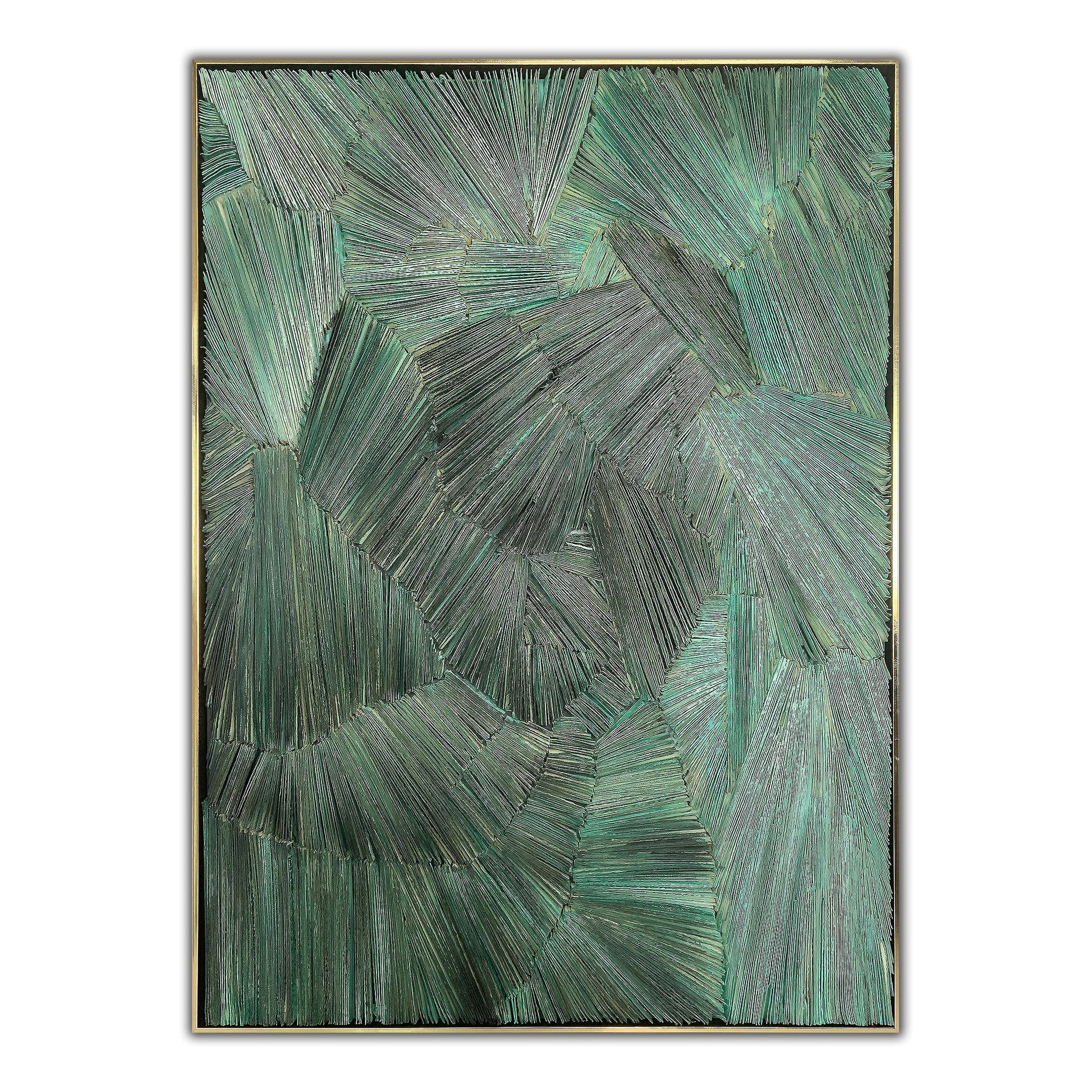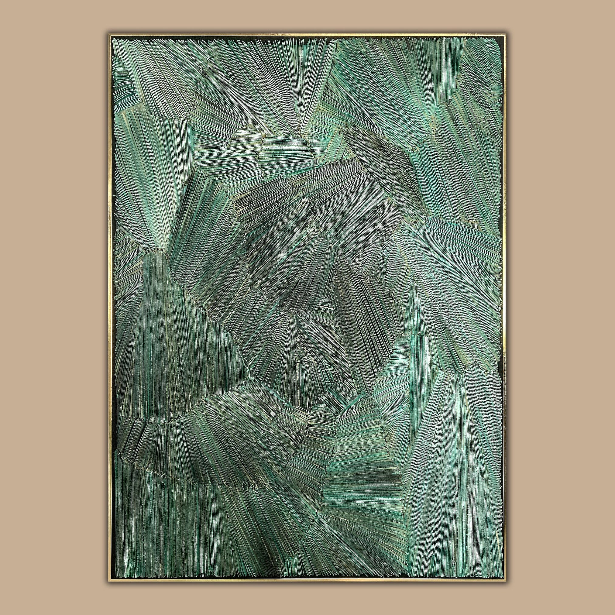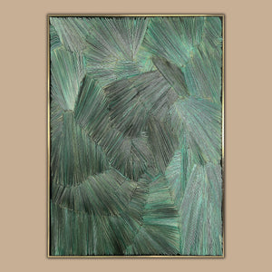 ارتقِ بجمالية مساحتك مع هذه التحفة الفنية المؤطّرة بإطار باللونين الأسود والذهبي. تنبض التركيبة بالحياة من خلال مزيج مبتكر من الكولاج الورقي اليدوي والرسم، ما يخلق مشهدًا بصريًا ديناميكيًا. يُعد هذا العمل الفني المعاصر قطعة آسرة بفضل عمقه وتوازنه الفني، ليضفي لمسة من التميز والحداثة على أي مساحة داخلية.
