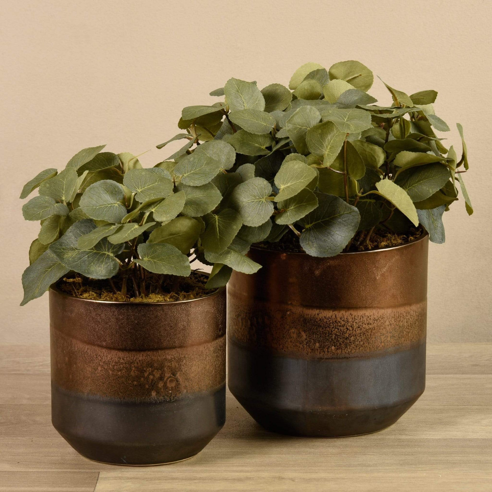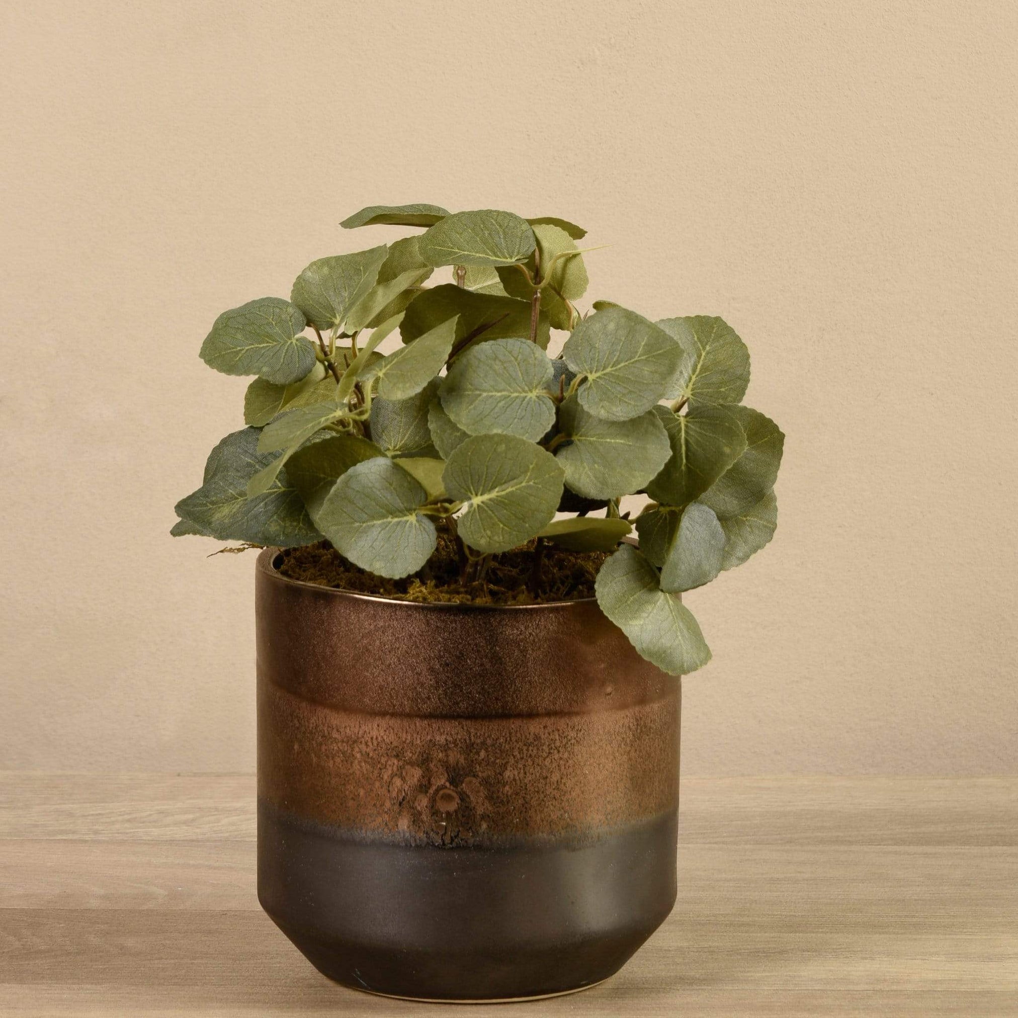 من المؤكد أن نبتة الأوكالبتوس الصناعية هذه ستضفي لمسة من الحيوية والسكينة على أي مساحة معيشة. أوراقها الخضراء تبدو واقعية بشكل مدهش عند اللمس، ويُكمل أصيصها ثنائي اللون بالرمادي والنحاسي أي نمط ديكور.