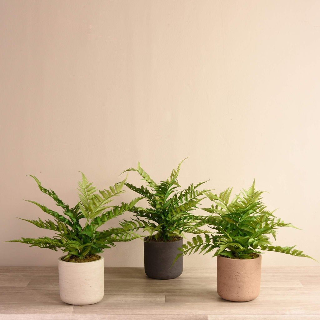 نبتة السرخس الصناعية من بلومر، داخل أصيص إسمنتي، لتجمع بين سحر الصحراء، وجمال النباتات الطبيعية، في تصميم عصري خلاب. يمكنك وضع هذه التشكيلة على حافة النافذة أو على طاولة جانبية لمظهر رائع يزيد من أناقة منزلك، ويدوم طويلاً دون حاجة للعناية المستمرة.
