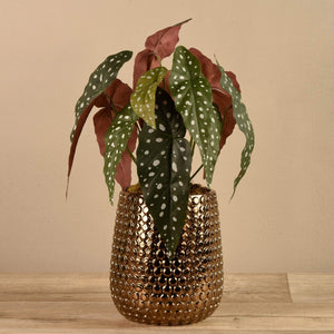 تعتبر نبتة البيغونيا رمزًا للتفرد؛ لذا فهي تضفي طابعًا مميزًا على أي مكان توضع به. وهي تأتيك من بلومر مصنعة يدويًا على أيدي متخصصين بالنباتات والزهور، لتمتلك مظهرًا مماثل لنبات البيغونيا الطبيعي. كما يميزها التصميم الأنيق والبراق للأصيص، حتى يبرز جمال أوراقها المتدلية.