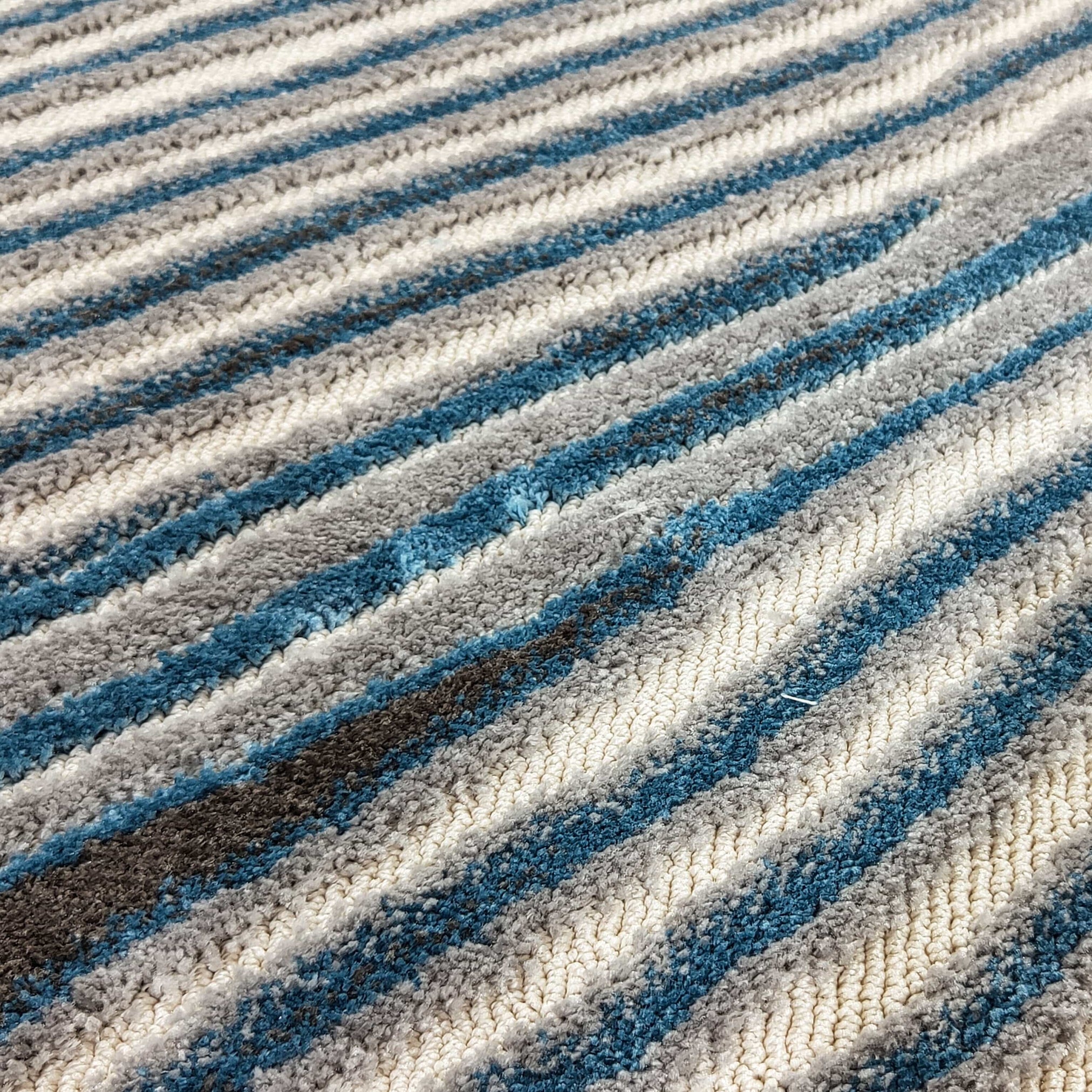 دلل أرضياتك بسجادة مذهلة مصممة باللون الأزرق مع نسيج يشبه الموجات. تم تصنيع هذه السجادة بعناية فائقة، حيث تتميز بشعر منخفض ومنسوجة من ألياف بوليستر عالية الجودة، مما يضمن المتانة والنعومة الفاخرة. مثالية لإضفاء لمسة من الراحة على أي غرفة في منزلك، توفر هذه السجادة إحساسًا دافئًا ومريحًا تحت القدم، سواء في غرفة النوم، غرفة الطعام، أو غرفة المعيشة.