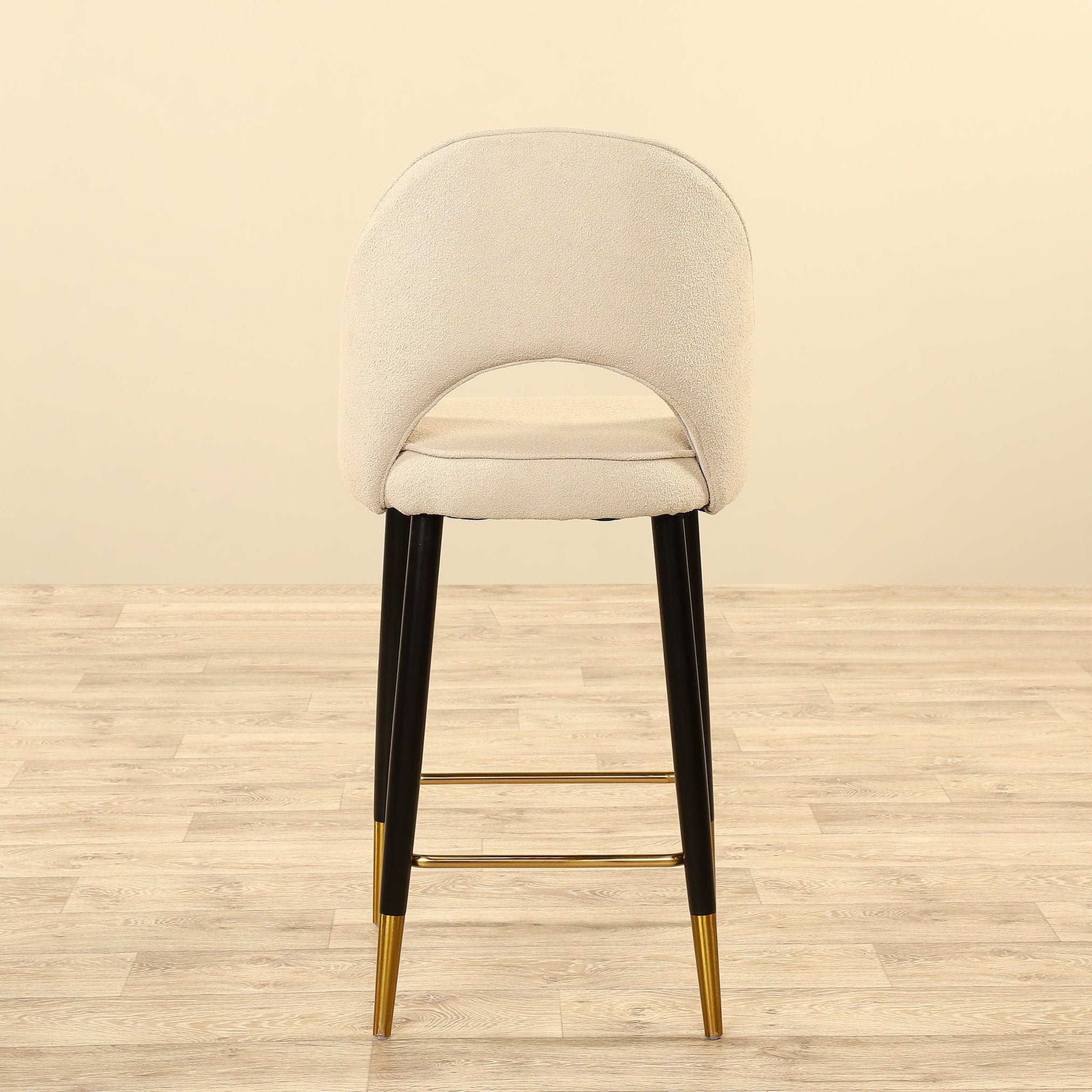 Luxe meets functional with the Massena Bar Stool. Designed for comfort and style, it has wooden legs, gold-finished metal accents, a plush boucle seat, and a peekaboo back for enduring good looks.