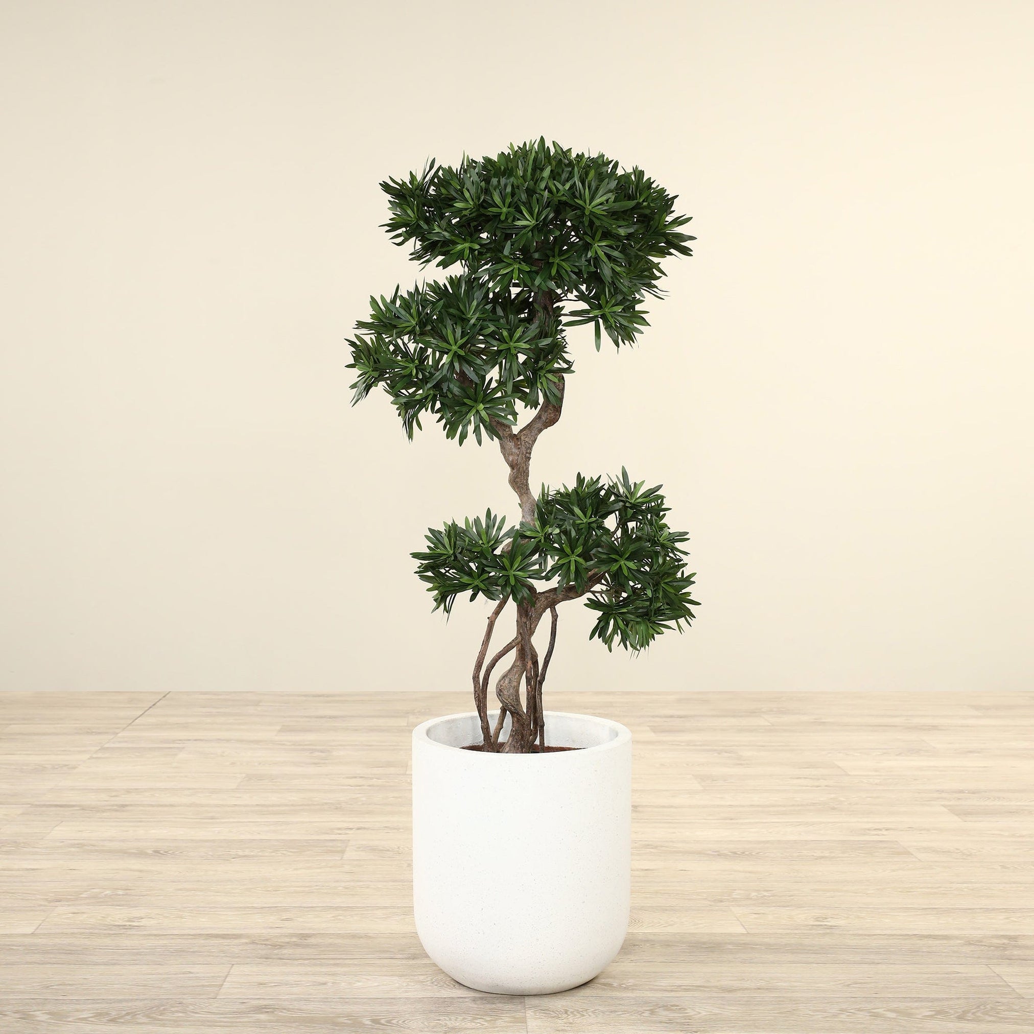 Part of the evergreen family the Podocarpus is recognizable by its flat, pointed leaves. Lush, full, and fresh our artificial Podocampius Tree is exceptionally realistic and it makes the perfect choice for natural beauty in any decorating style. This tall tree arrives fully assembled – simply arrange the branches, place it in a pot of your choosing, and decorate your room.