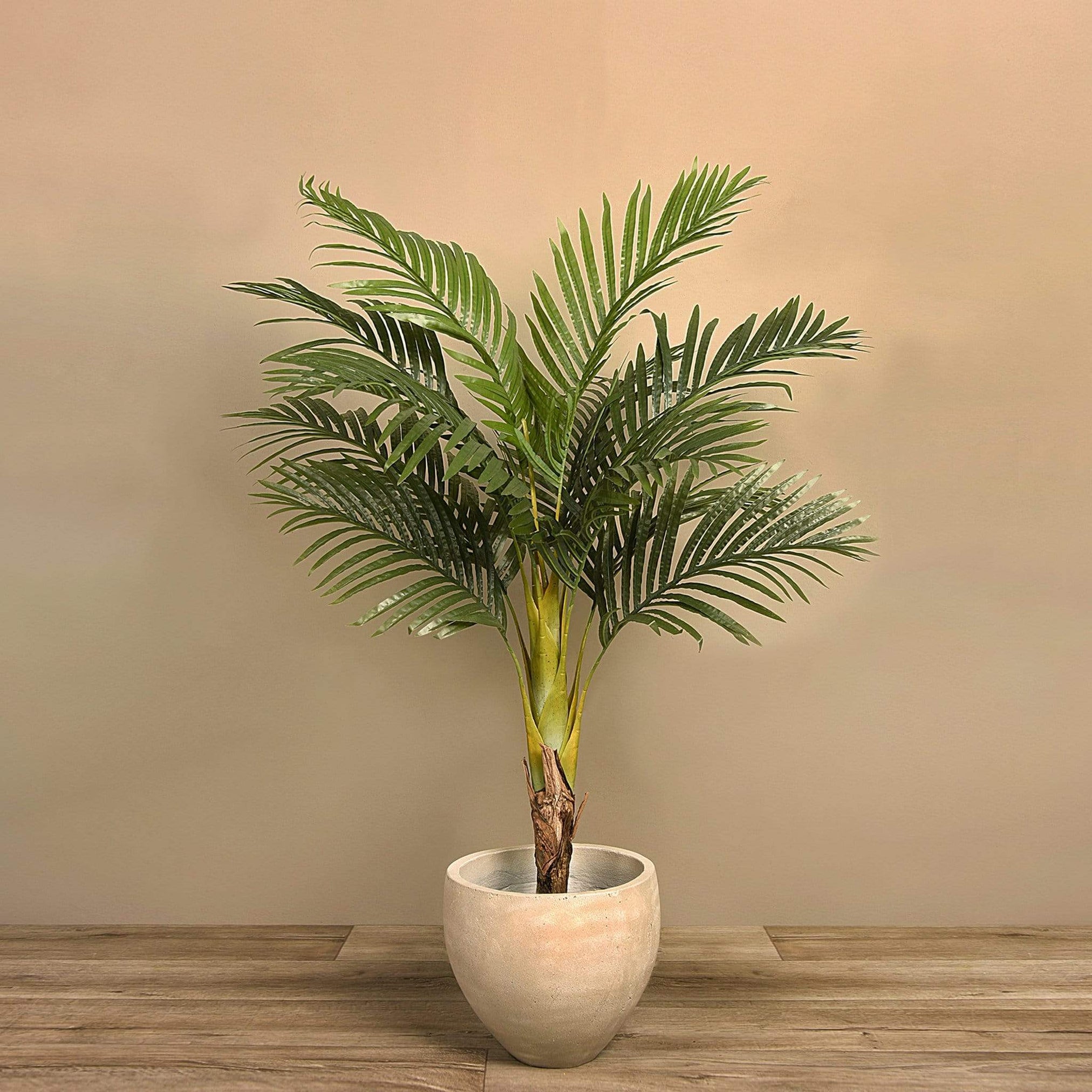 Enjoy the exotic air an indoor palm tree brings with none of the maintenance. This lush, leafy areca palm tree looks so lifelike, your guests will never know it's artificial. This tree comes completely assembled. Simply bend the branches out, place it in a concrete pot of your choice, and use it to decorate any living space.