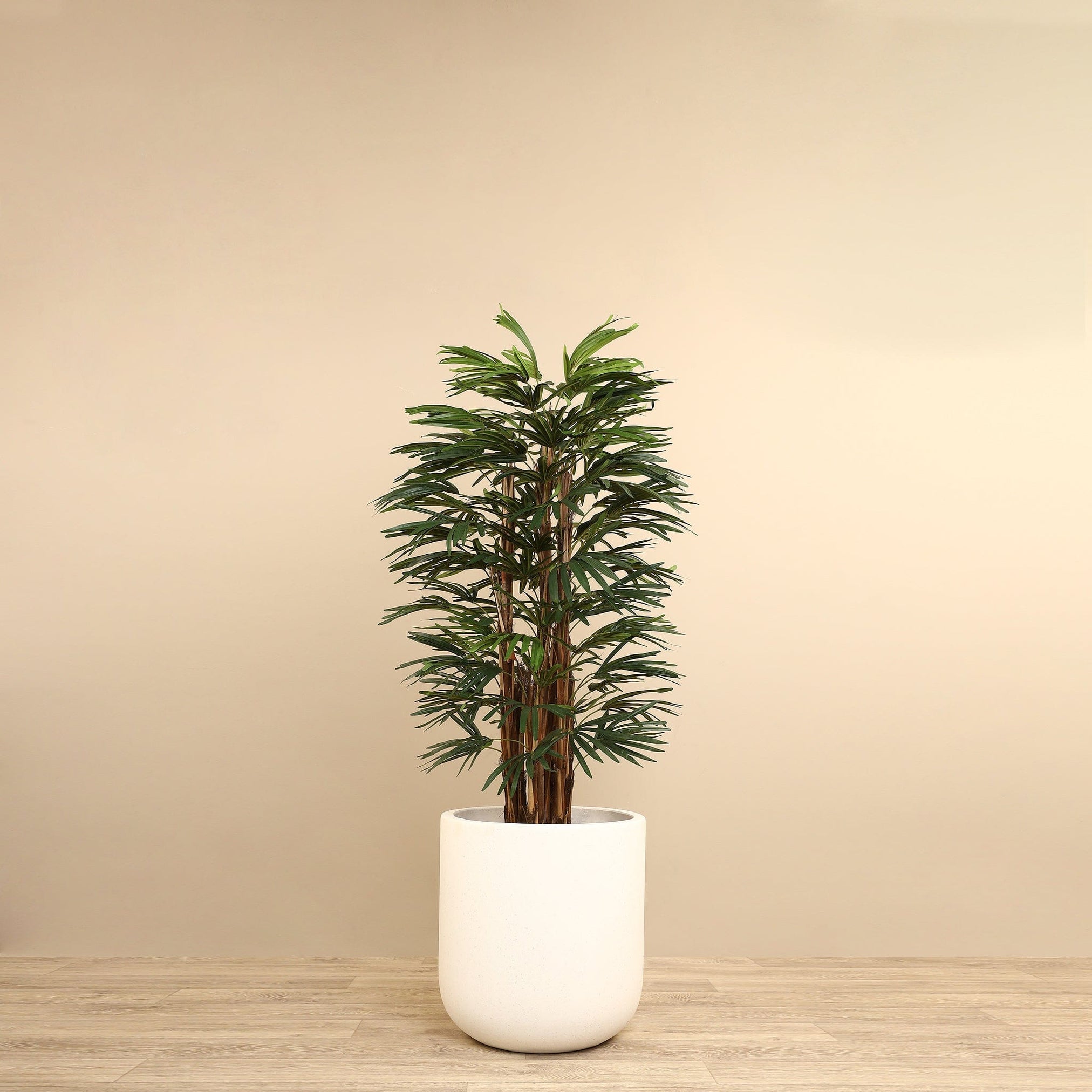 Great for vertical interest in any space this artificial Raphis Palm is beautifully crafted for a realistic look. Improve your space and your mood with this tall faux tree perfect for natural beauty to enliven a decorating style. This tall tree arrives fully assembled – simply arrange the branches, place it in a pot of your choosing, and decorate your room.