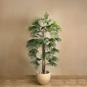 A symbol of righteousness and freedom, this artificial fan palm tree will invite good vibes into your home. Its green leaves and brown trunk look so lifelike, your guests will never guess they're fake. This tree comes fully assembled – simply fan out the leaves and place in a decorative pot to complete the look.