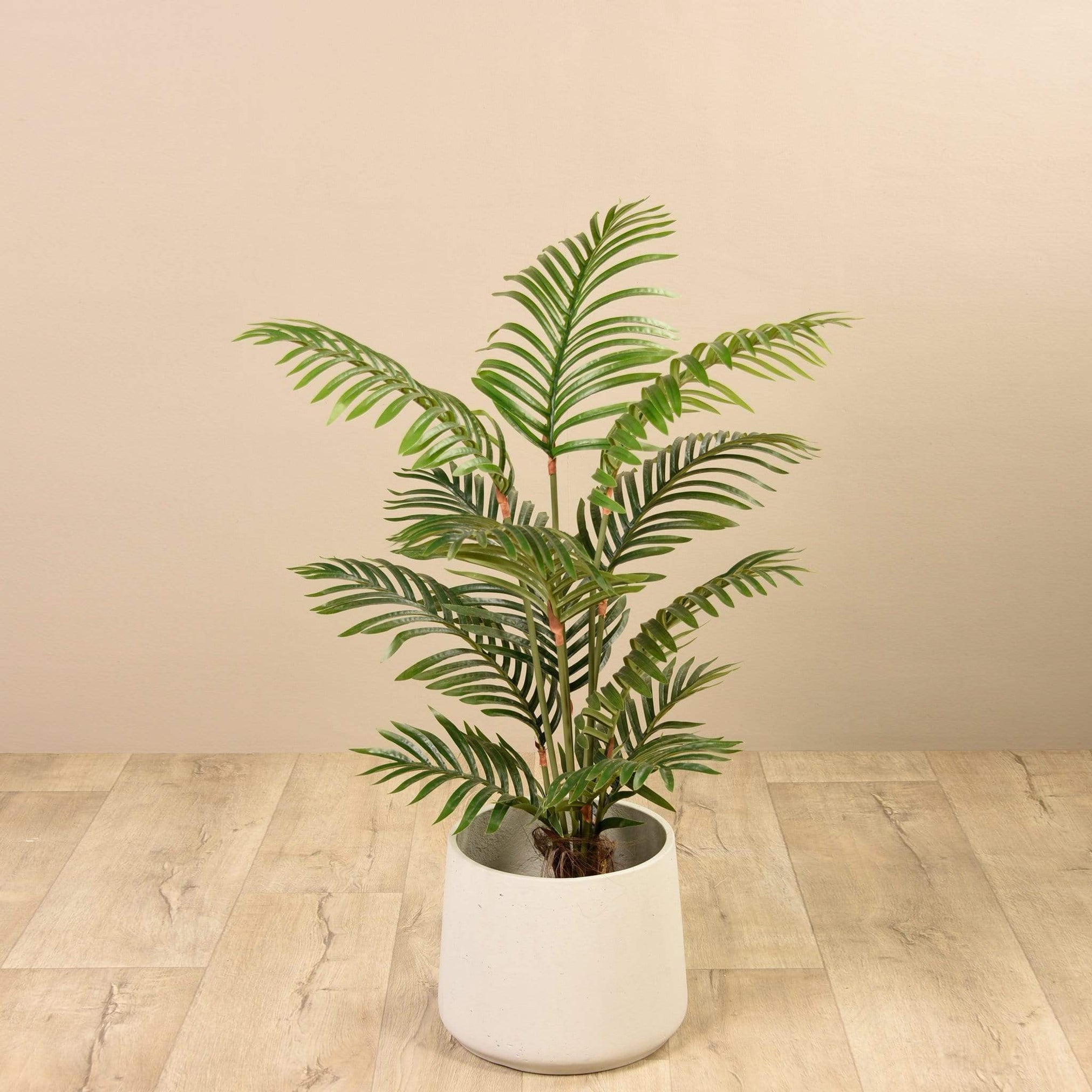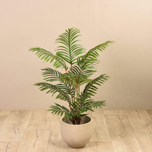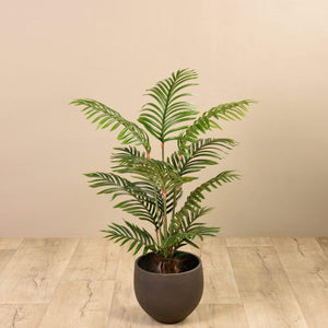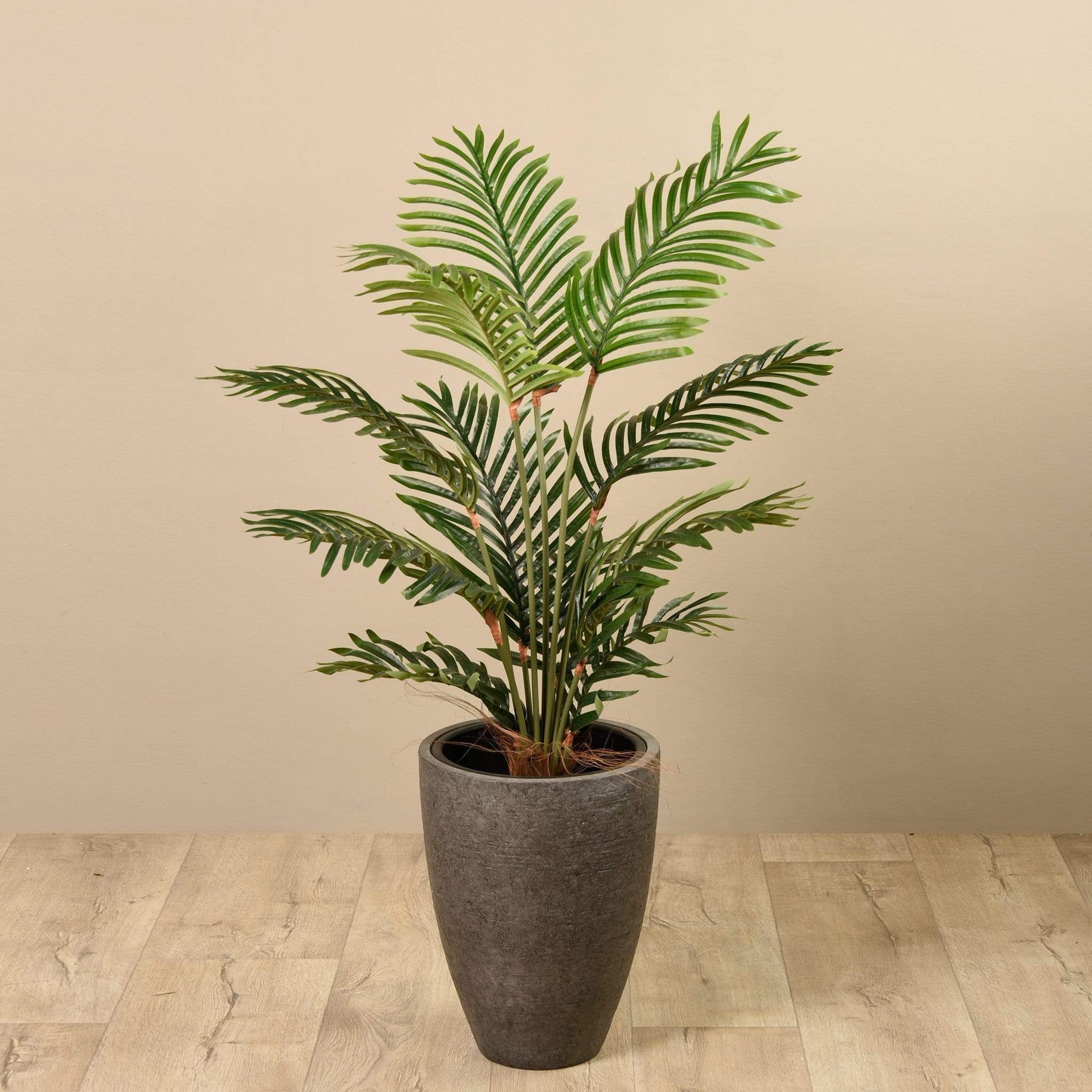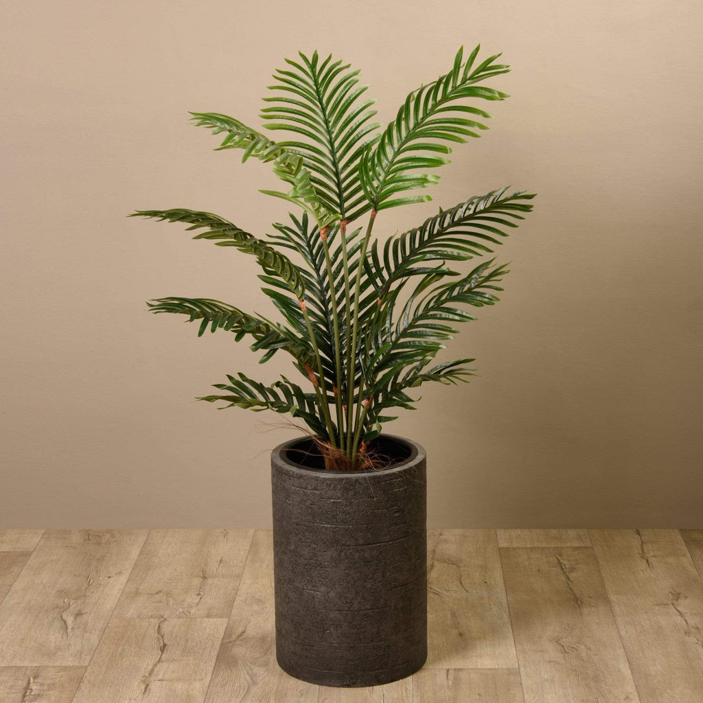 Effortlessly add a tropical flair to your decorating style with our stunning artificial Kentia Palm. Crafted with realistic precision this faux Kentia Palm has feather-like fronds and verdant long leaves. Place this spectacular plant in a pot of your choosing and you have an instant refresh.