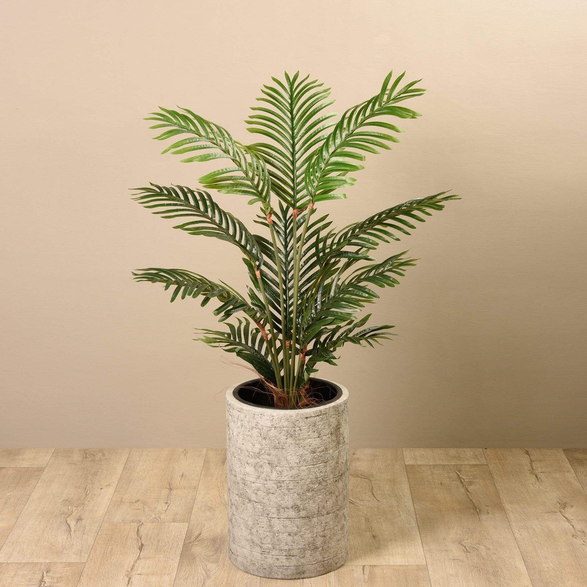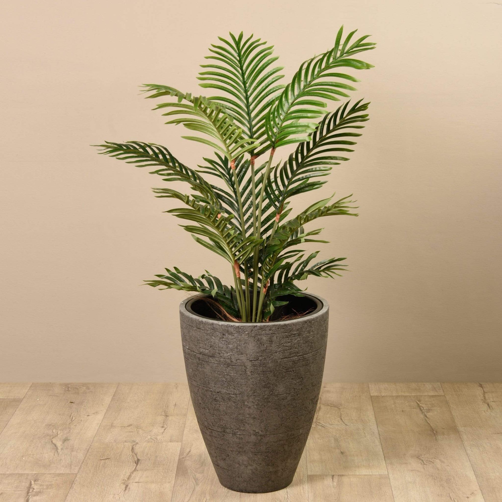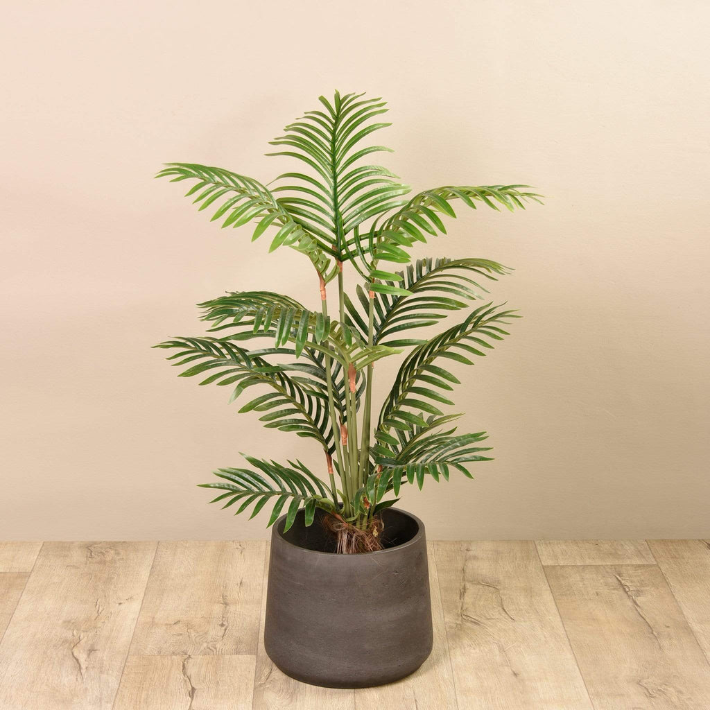 Effortlessly add a tropical flair to your decorating style with our stunning artificial Kentia Palm. Crafted with realistic precision this faux Kentia Palm has feather-like fronds and verdant long leaves. Place this spectacular plant in a pot of your choosing and you have an instant refresh.