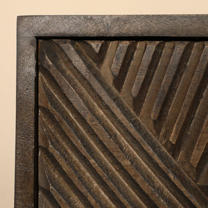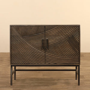 A sculptural front with a wonderful wave-like design adorns this Wooden Cabinet. Ideal for use in a lounge, entryway, or dining room it features an elevated look, sleek door pulls, and an interior space perfect for out-of-sight storage.