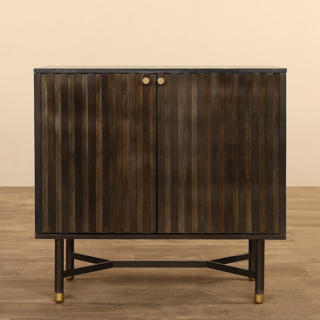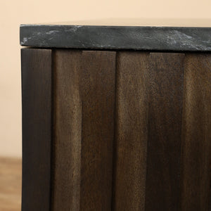 The perfect blend of vintage and contemporary styles, this Wood Sideboard has striped details to create a wonderful focal point. It rests on wood legs with metal tips and it is topped with lustrous marble for an elegant finish. Ideal for any room of the home, this Wood Cabinet has generous interior storage.