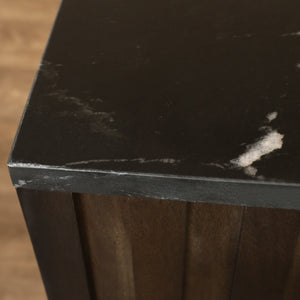 Note: Wooden Striped Sideboard / Cabinet With Marble Top With Iron Stand.