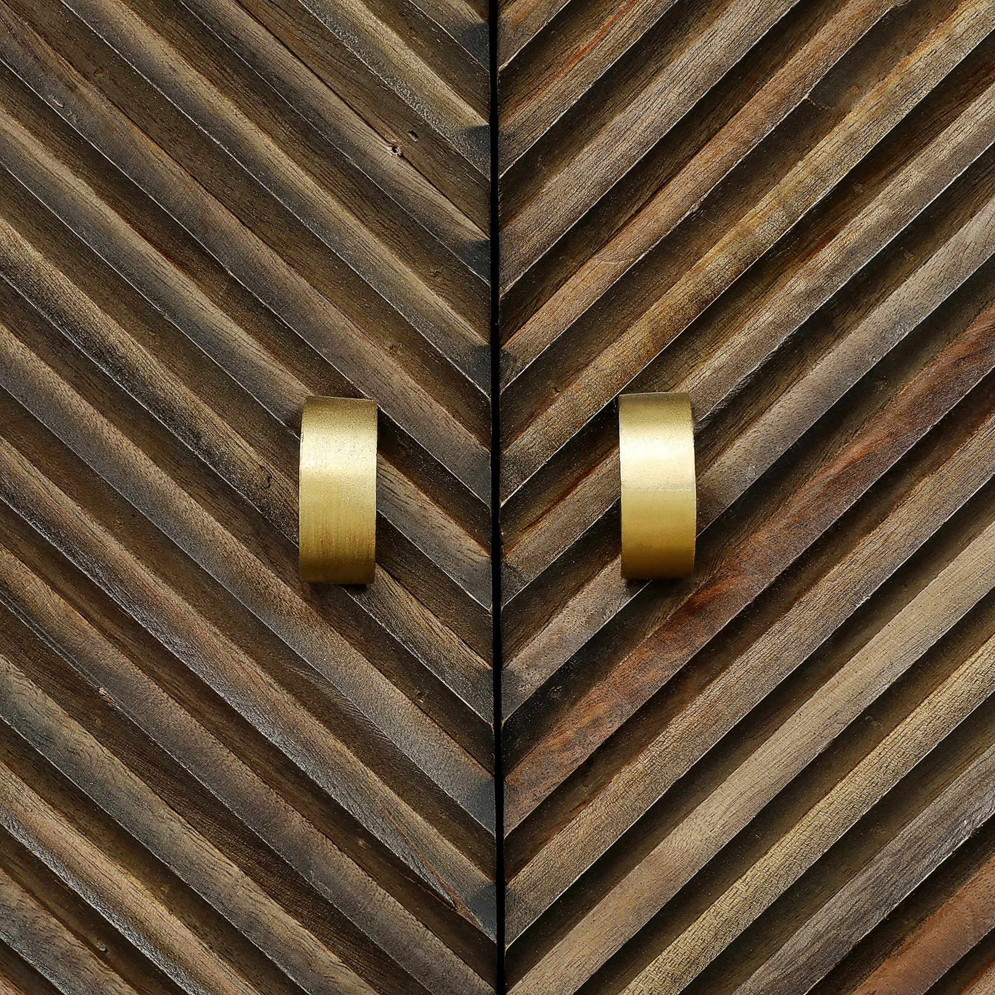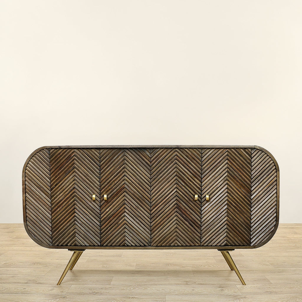 Note: Wooden Oval Raised Chevron Design 4 Door Cabinet With Iron Legs.