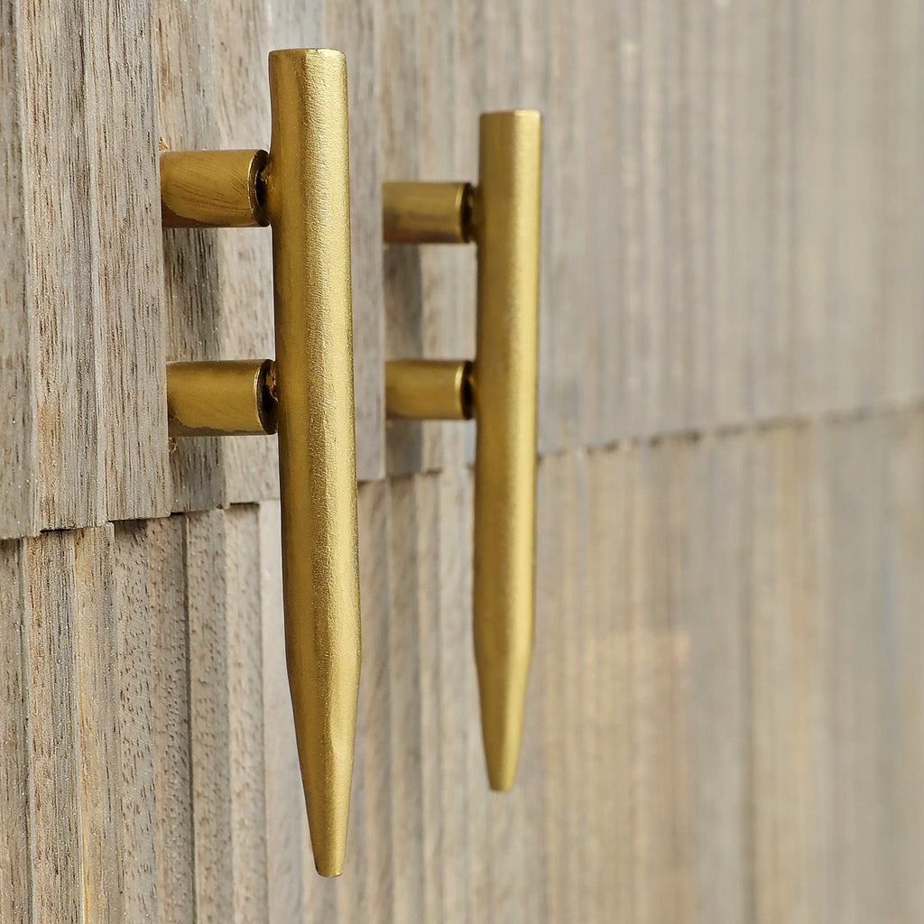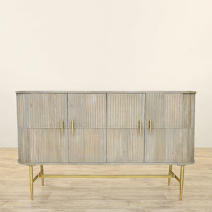 Discover the perfect blend of classic charm and contemporary flair with this stunning Wooden Sideboard. Constructed from durable oak and finished in a soft white, it features gracefully curved sides that lend an air of elegance. The sideboard is raised on gleaming metal supports and legs, adding a modern touch and enhancing its overall sleekness. Step-carved detailing on the cabinet fronts and metal pulls provide sophisticated accents, while the spacious interior ensures ample storage for all your essentials.