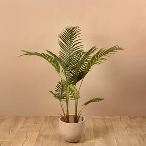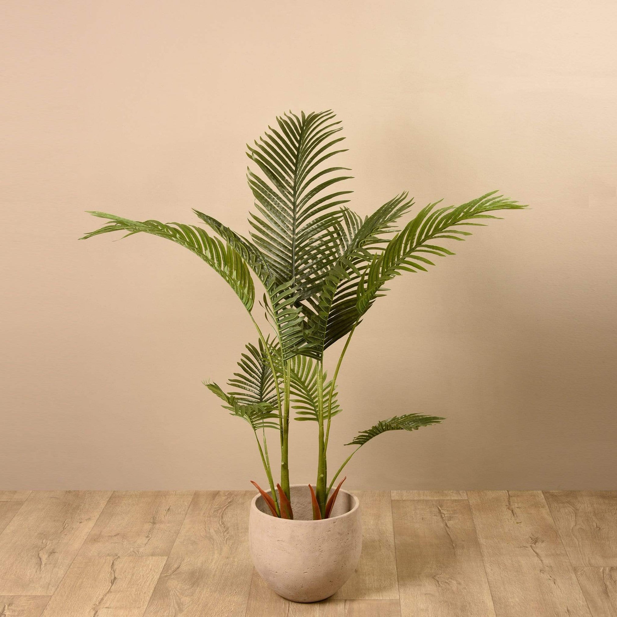 This exotic-looking indoor palm tree will thrive in any climate. Its lush palm fronds look so lifelike, your guests will never know it's artificial. This small tree comes completely assembled. Simply bend the branches out, place it in a concrete pot of your choice, and use it to decorate any living space.