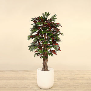 Each delicate branch of this artificial Capensia Fig Tree is filled with beautiful leaves to create a full and lush look. Intertwining trunks finish the look perfectly making this lovely faux tree an easy choice for a touch of natural beauty.