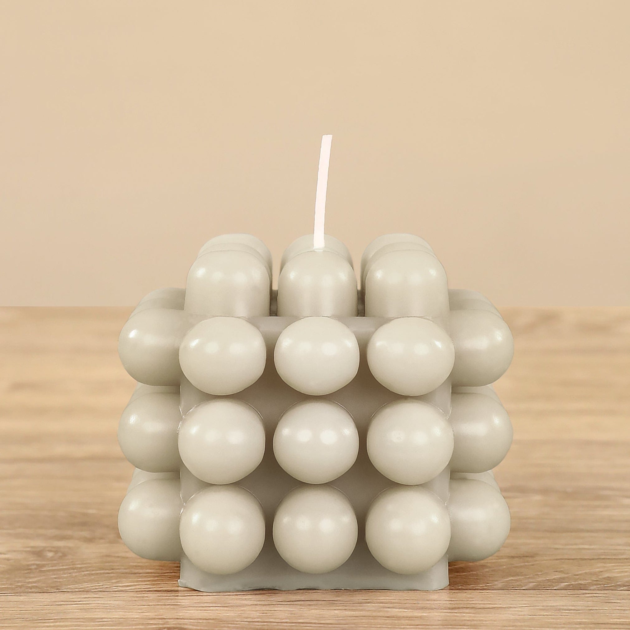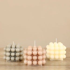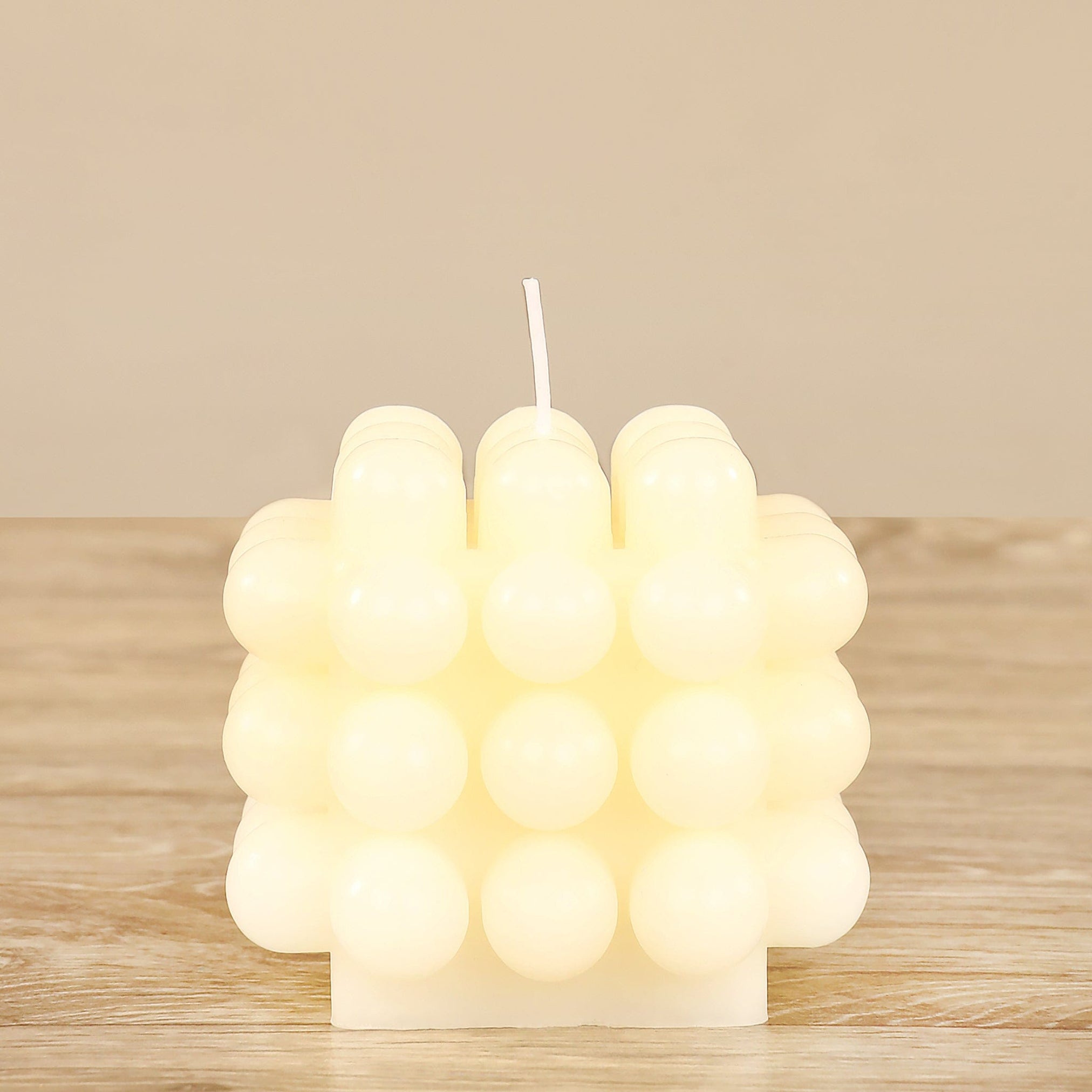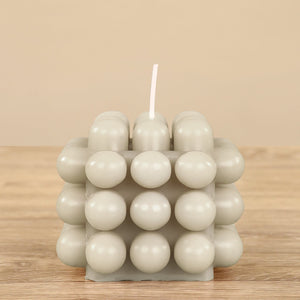 Crafted with care this modern candle is made from a combination of soy wax and pure beeswax. As you light the wick, the candle's gentle flame dances gracefully filling the air with warmth and serenity. Illuminate your space with the gentle beauty of this bubble-decorated candle and enjoy its calming allure.