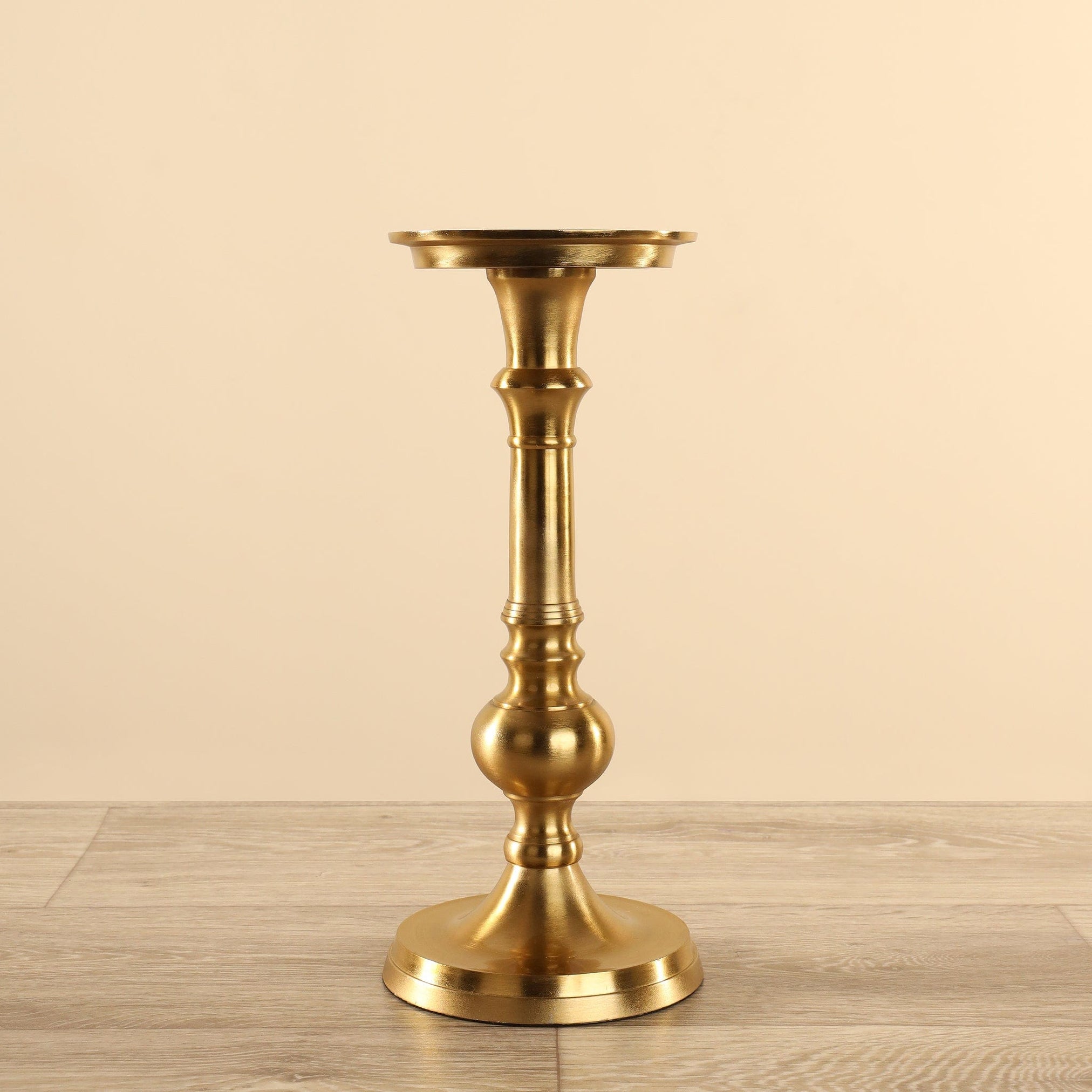 Lend a traditional look to a beautifully set table or mantel with this gleaming candle holder. True to classic style it has a round base for stability and a graceful design to lend allure to any setting.