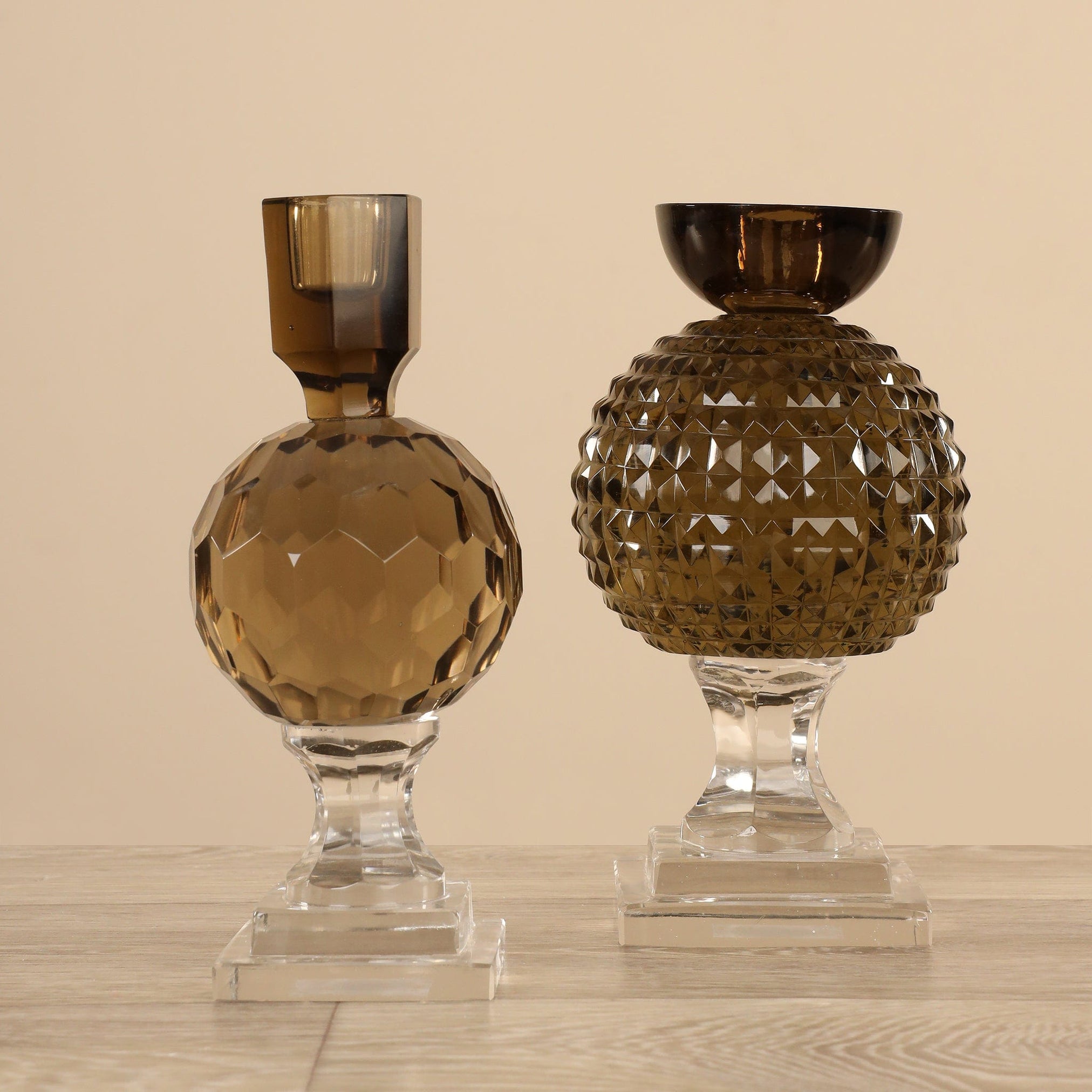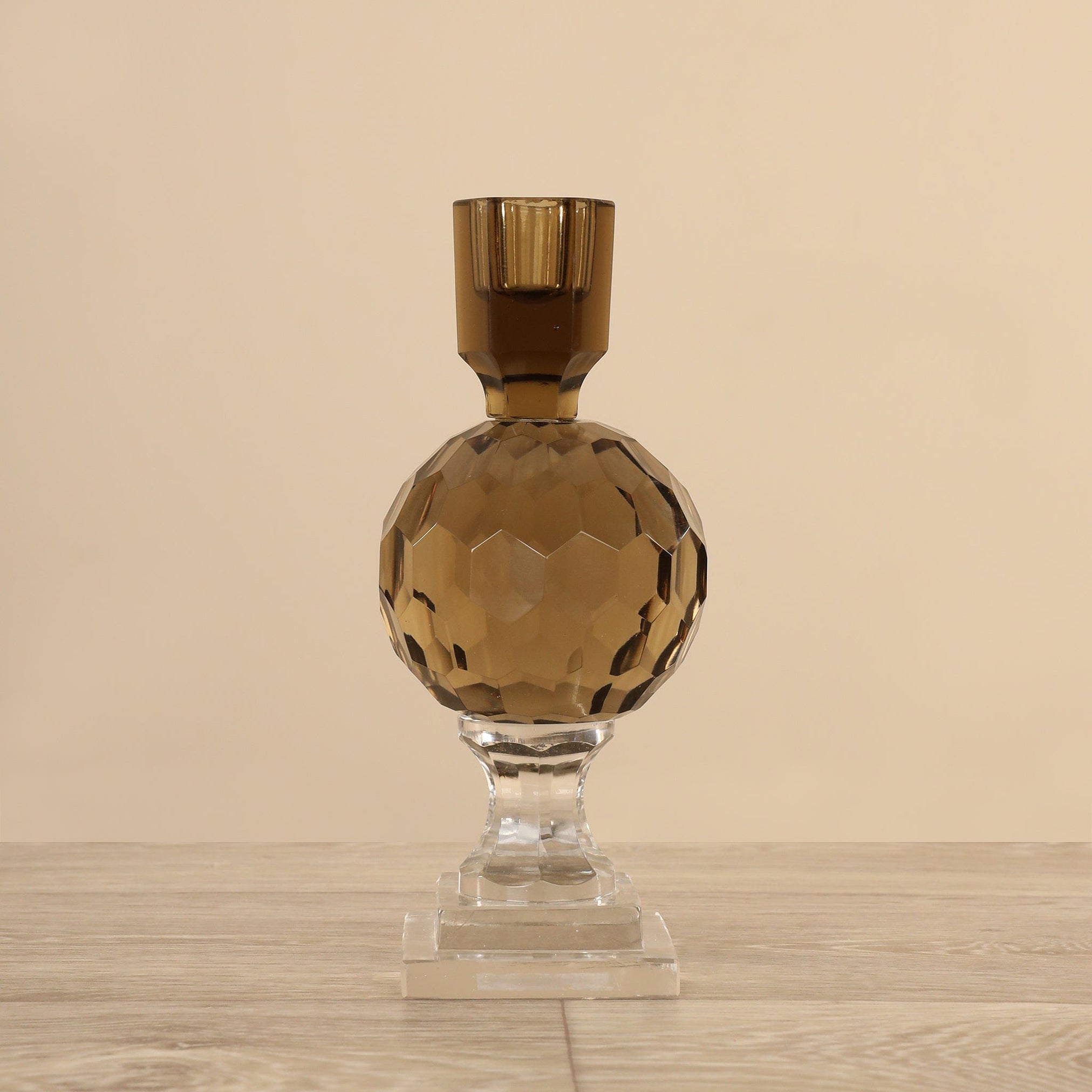 Designed to hold a taper candle securely, this stunning faceted glass candle holder is versatile enough for any occasion or event. Whether placed on a dining table, mantelpiece, or bedroom dresser, it instantly becomes the center of attention, radiating a captivating glow that captivates and delights.