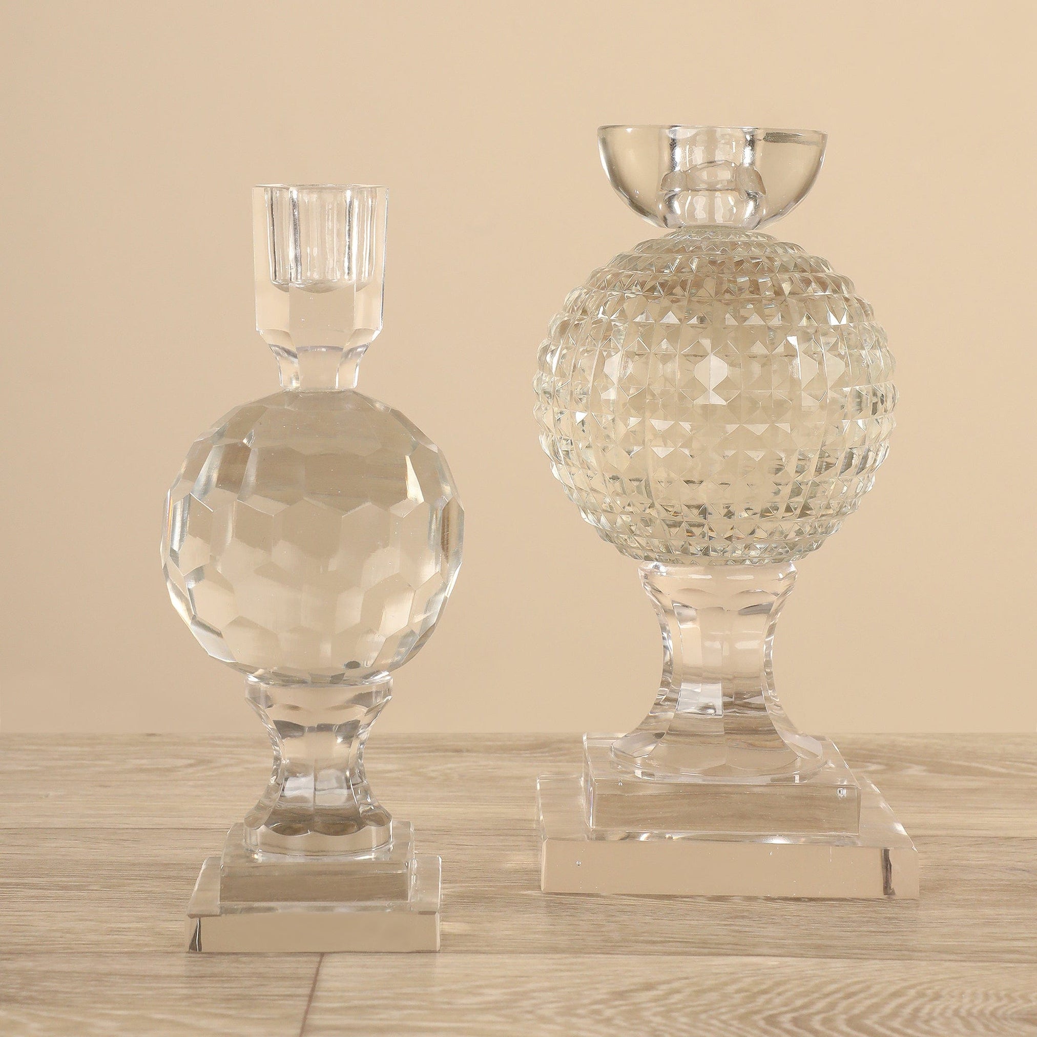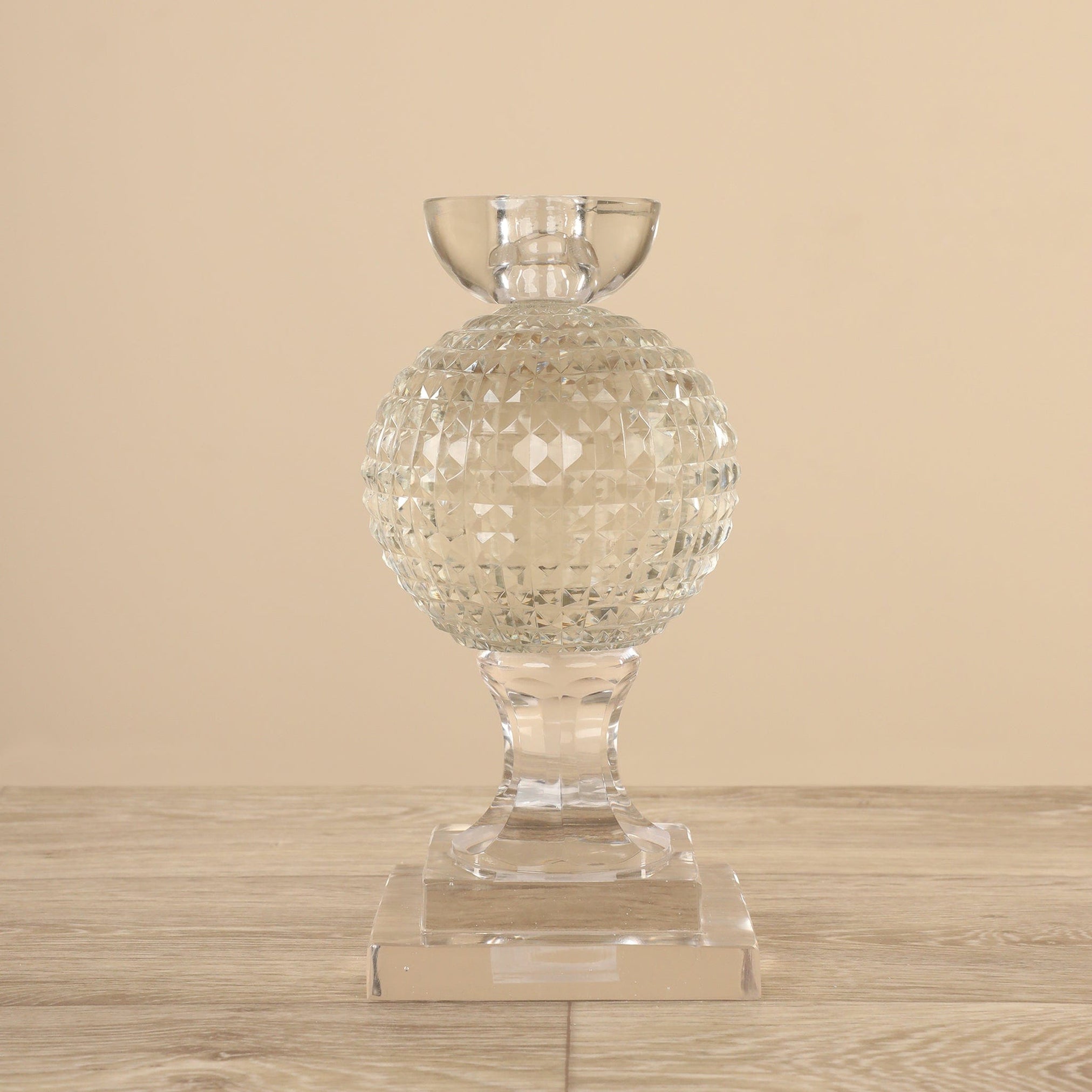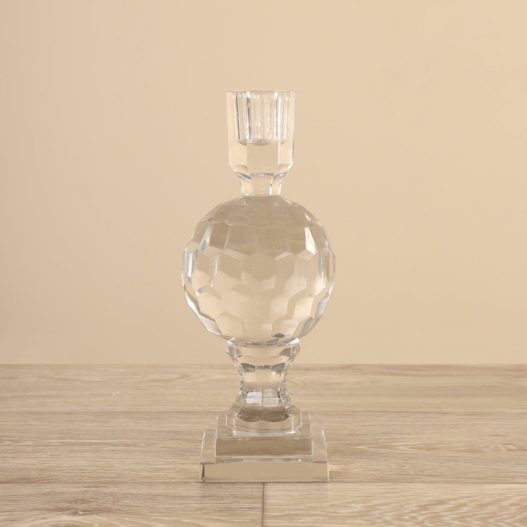 Designed to hold a taper candle securely, this stunning faceted glass candle holder is versatile enough for any occasion or event. Whether placed on a dining table, mantelpiece, or bedroom dresser, it instantly becomes the center of attention, radiating a captivating glow that captivates and delights.