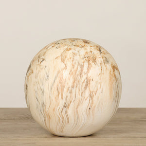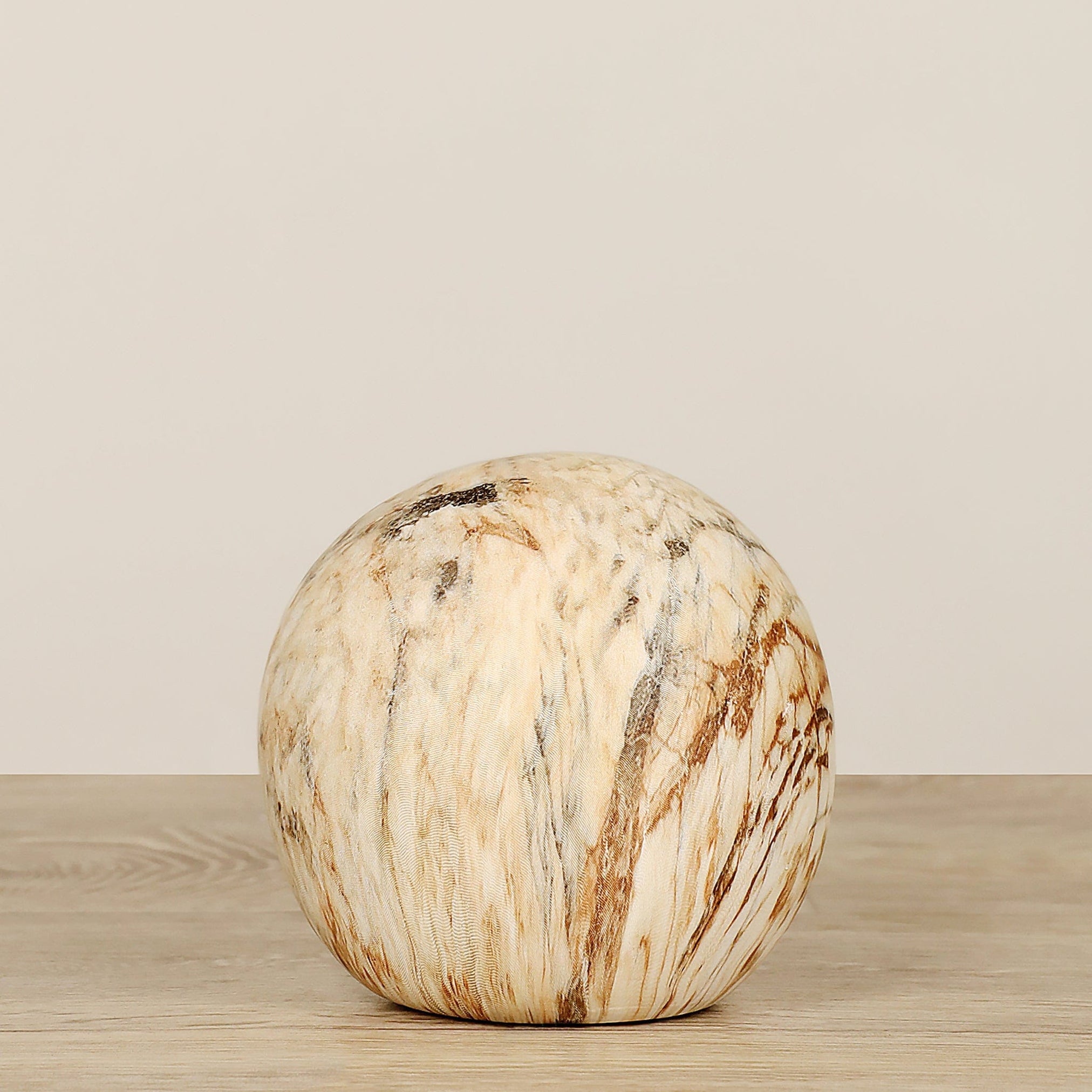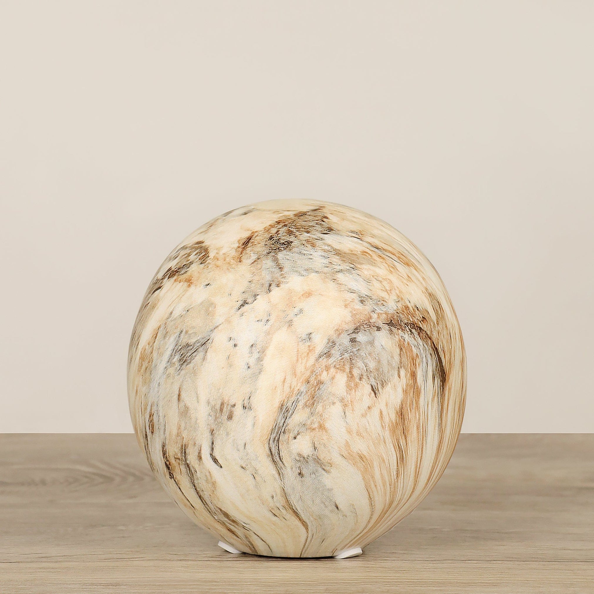 Perfectly tailored for integration into a modern environment, this ceramic sphere embodies modern design sensibilities. Whether displayed prominently on a shelf, elegantly positioned on a side table, or showcased as a centerpiece, this sculpture brings a sense of artistic intrigue to your surroundings.