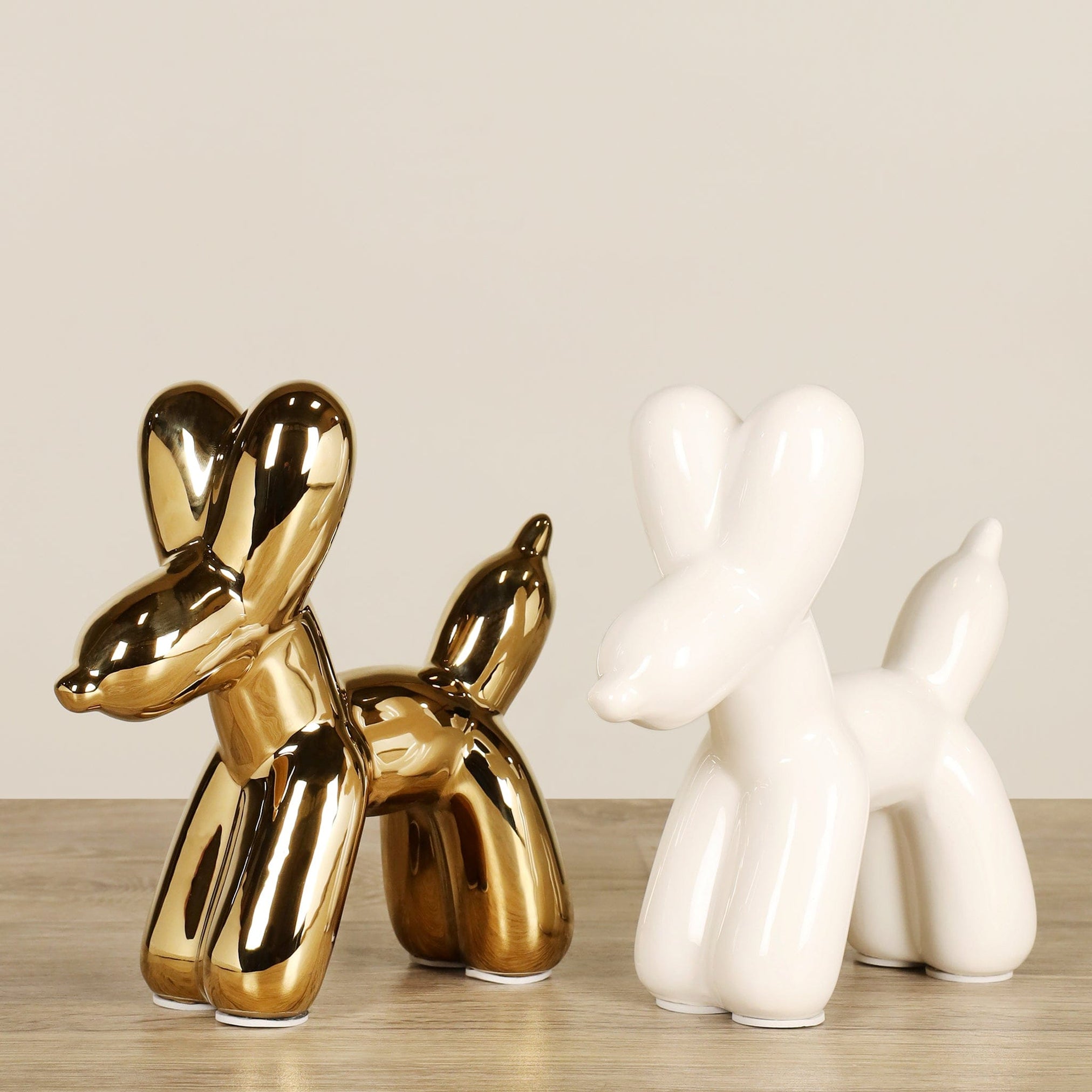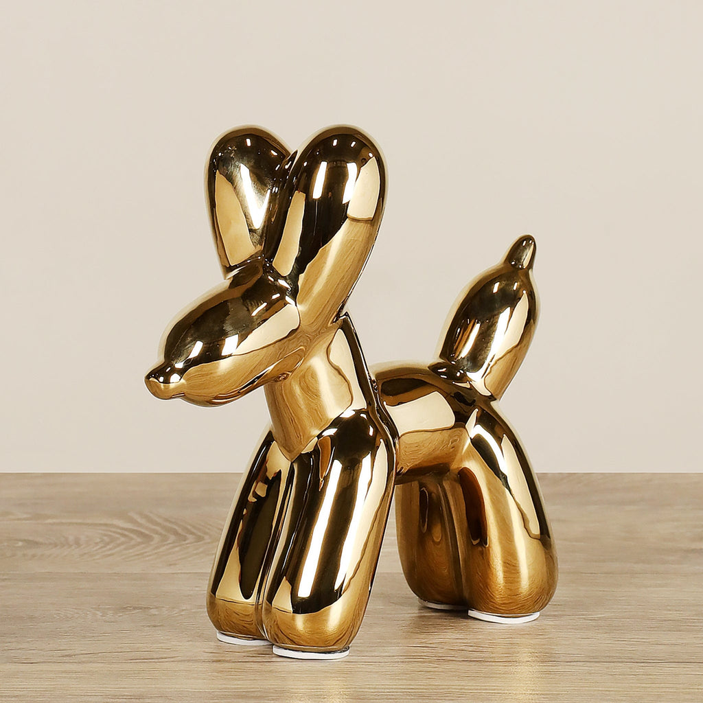 Infuse your shelves and tabletops with a touch of modern decor using this ceramic balloon dog figurine. Meticulously crafted from ceramic, this charming piece has the unique power to imbue its surroundings with a delightful sense of joy. Whether showcased on shelves or employed as whimsical office adornment, this ceramic piece radiates with a playful charm.