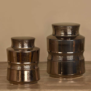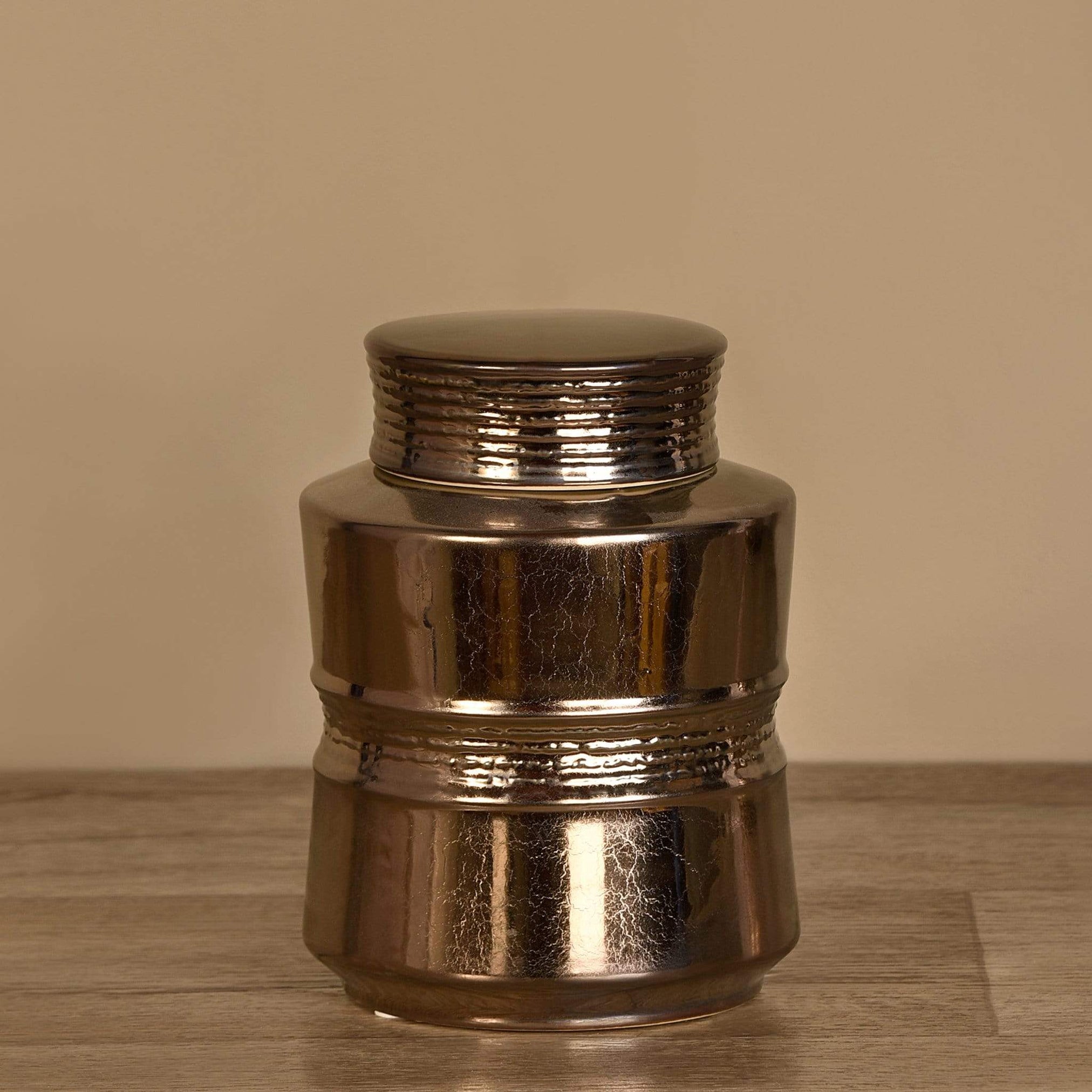 This gorgeous jar strikes the perfect balance between elegant and modern. This sleek jar makes quite a statement. Its removable lid makes it functional, too. Use it to store special trinkets or simply to add shine to any kitchen counter.