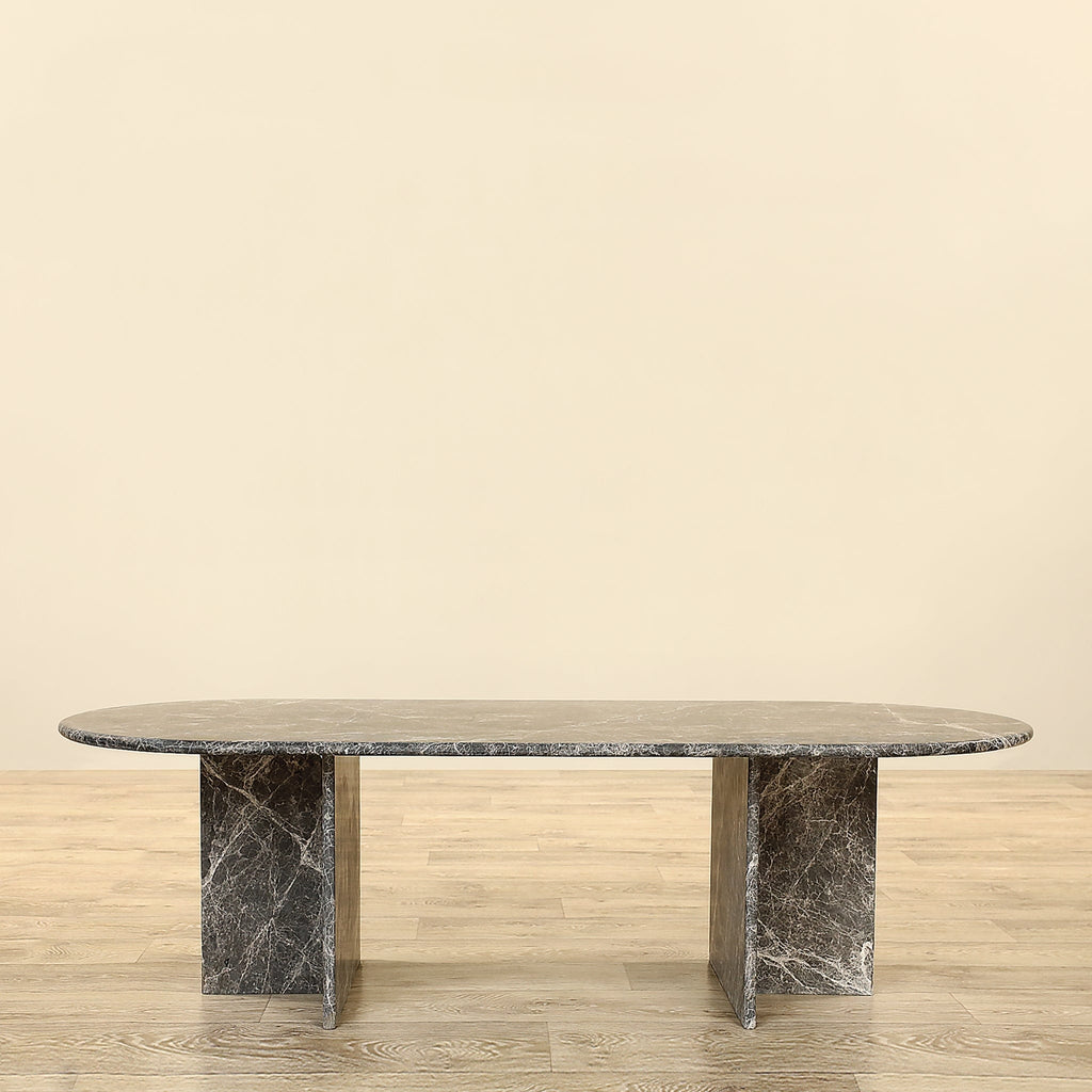 Exquisitely sophisticated in its design, the Cervo Coffee Table effortlessly exudes an air of continuous motion that will transform your decor into a realm of elegance. Cervo ingeniously reimagines the traditional pedestal base by introducing two open corners that elevate an oval marble top, seamlessly enhancing any interior space.