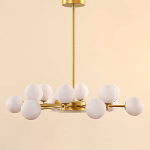 Brighten up with a bold update. This elegant chandelier elevates the classic silhouette with frosted glass globe components and a gleaming gold finish.