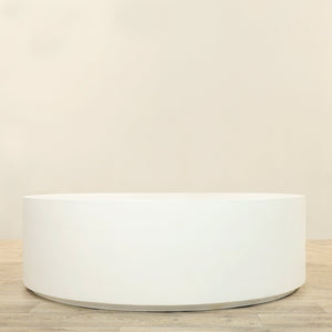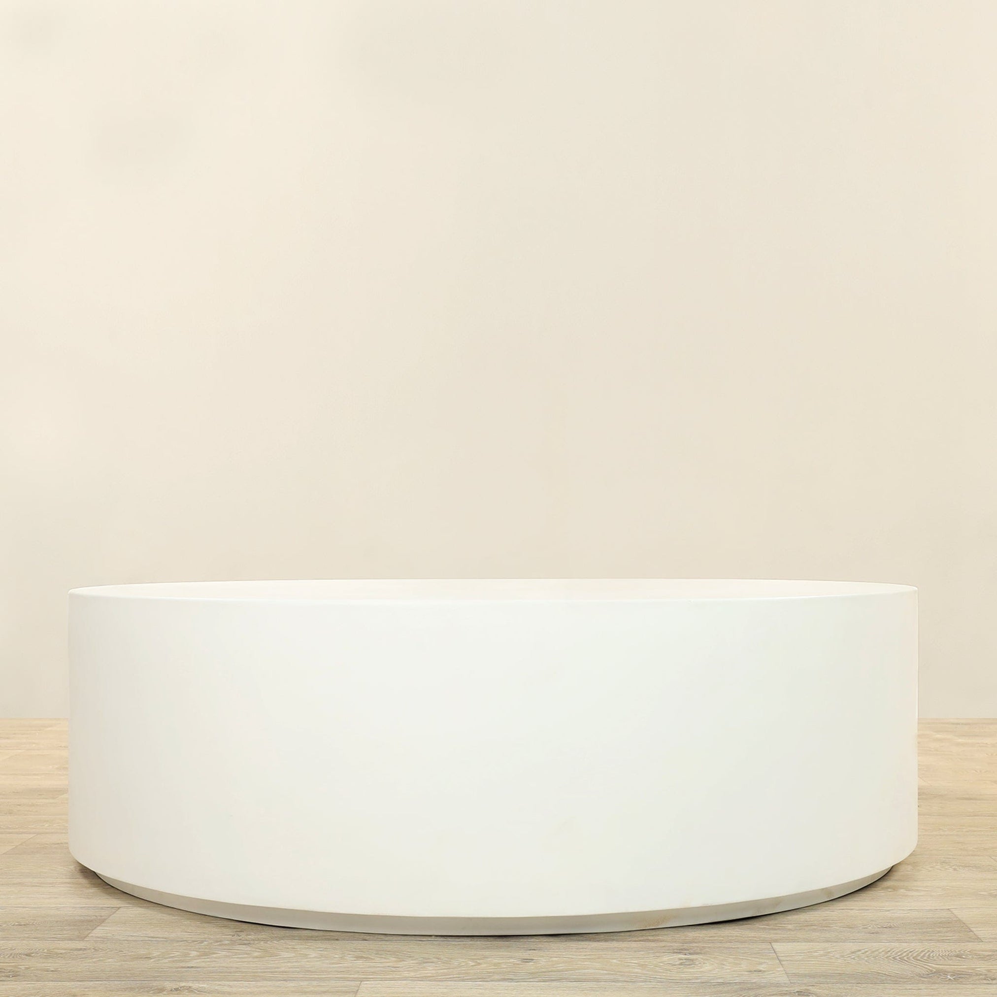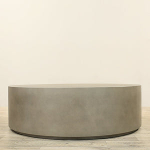 A solid round form makes this concrete coffee table an excellent choice for a contemporary space. Designed in durable concrete this minimalist coffee table can be used indoors or outdoors to finish off a seating area with elegance.