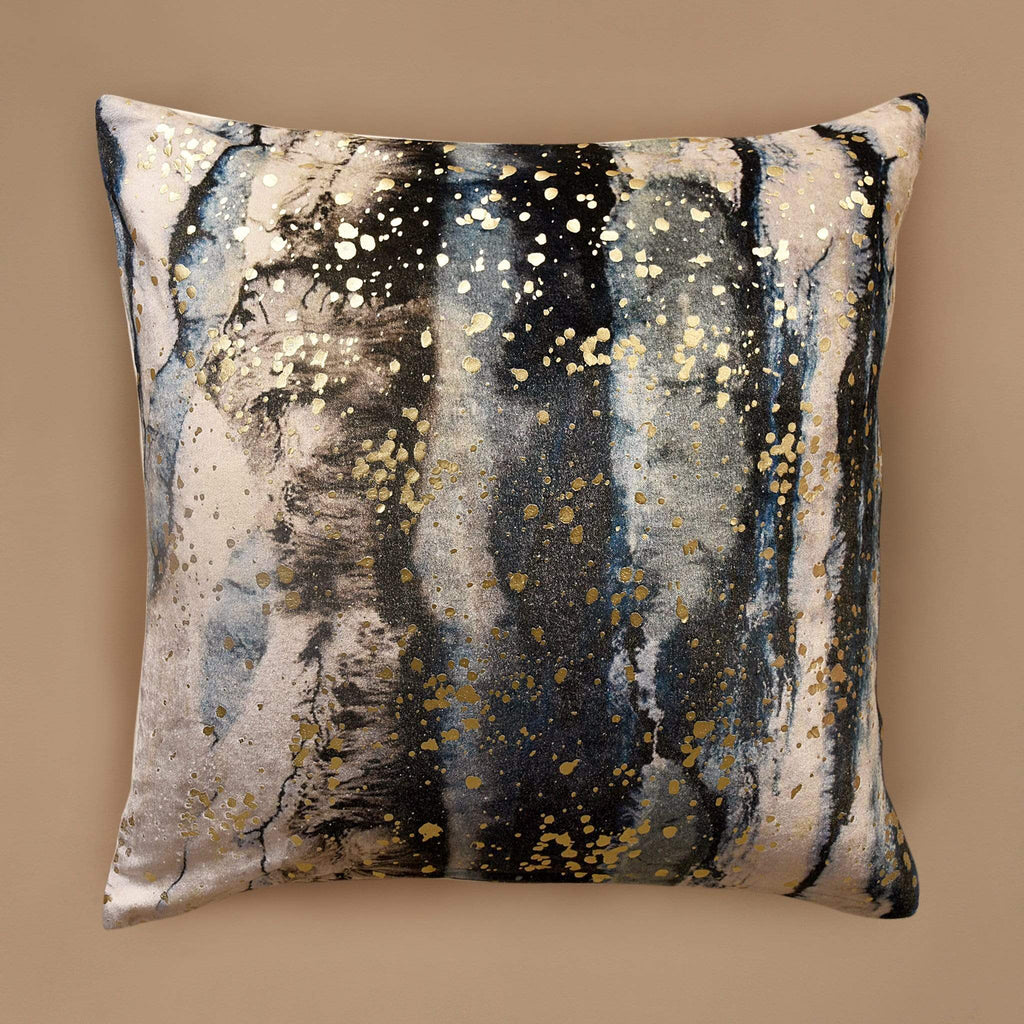 Add a decorative touch to any sitting area with this square accent pillow. Its foil print abstract pattern, strong covered zipper, and soft feel make it the perfect addition to your couch.
