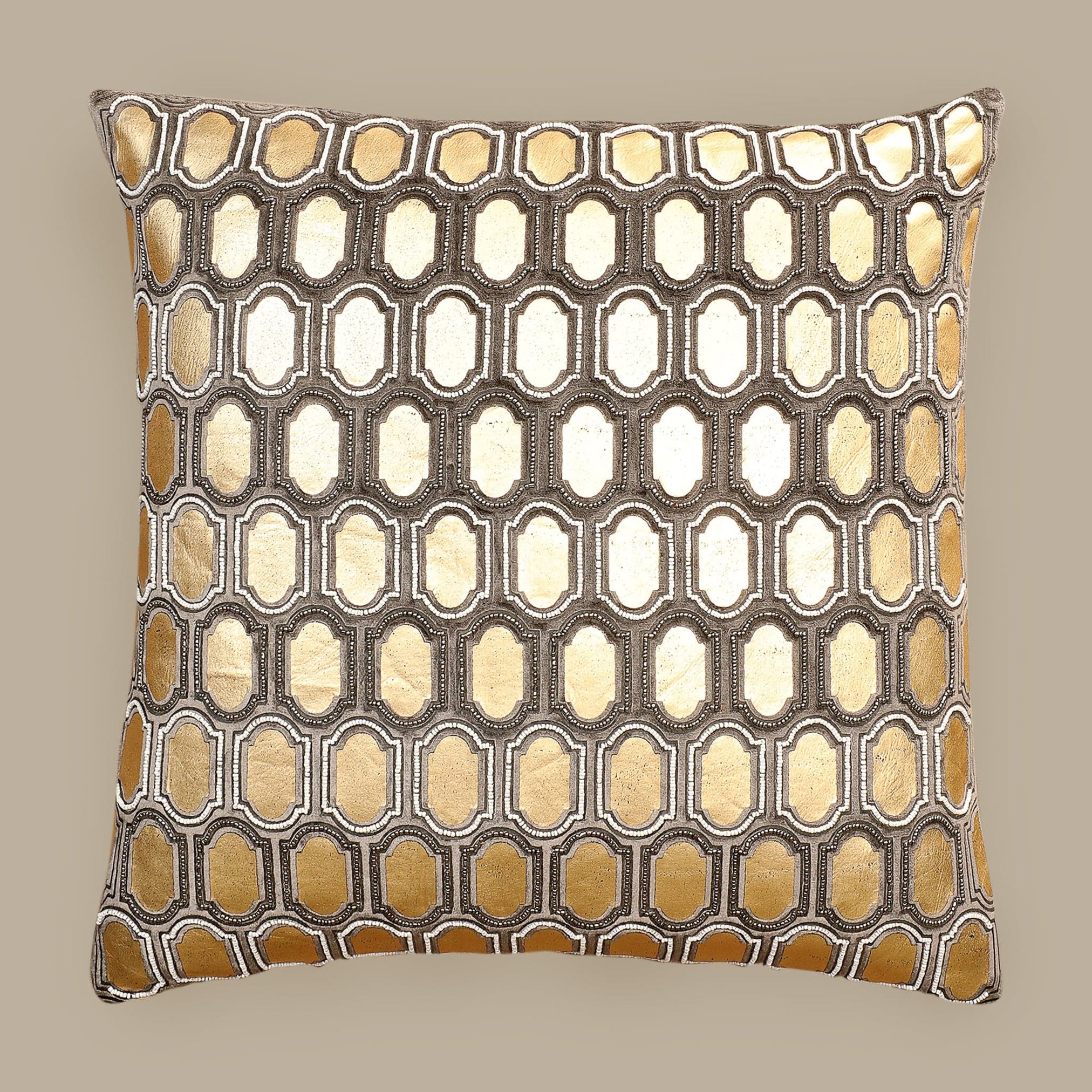 Add a decorative touch to any sitting area with this square accent pillow. Its contemporary design, hand beadwork, durable covered zipper, and soft feel make it the perfect addition to your couch.