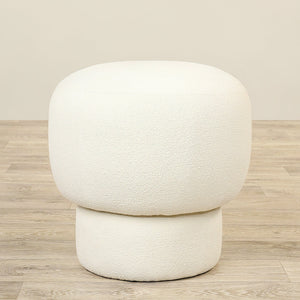 The curvy shape and full upholstery of this elegant ottoman are very distinctive. Give it a place of honor in a seating area where it can be used as a seat or footrest. Covered in durable boucle fabric, the Gus Stool is a multifunctional piece for many decorating aesthetics.