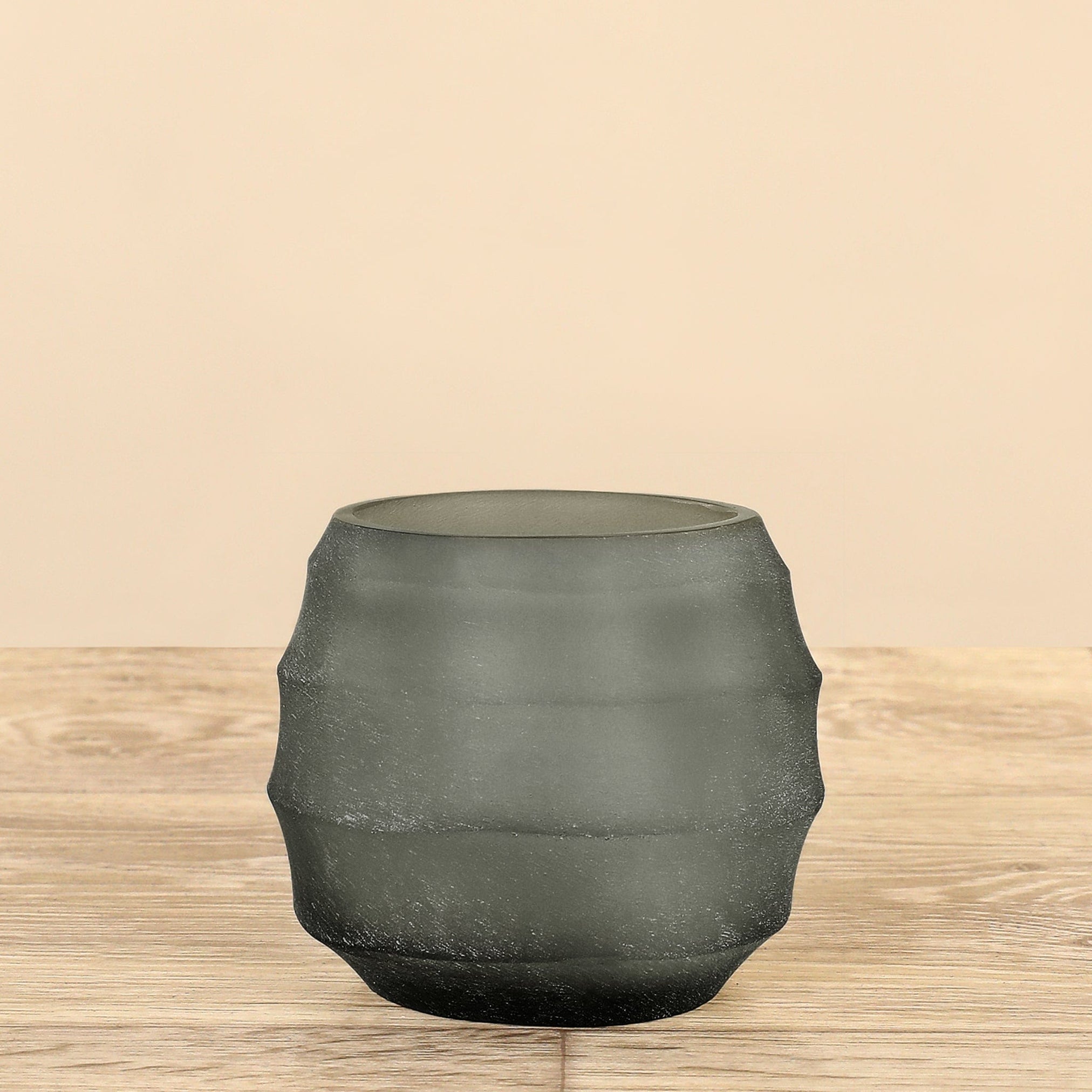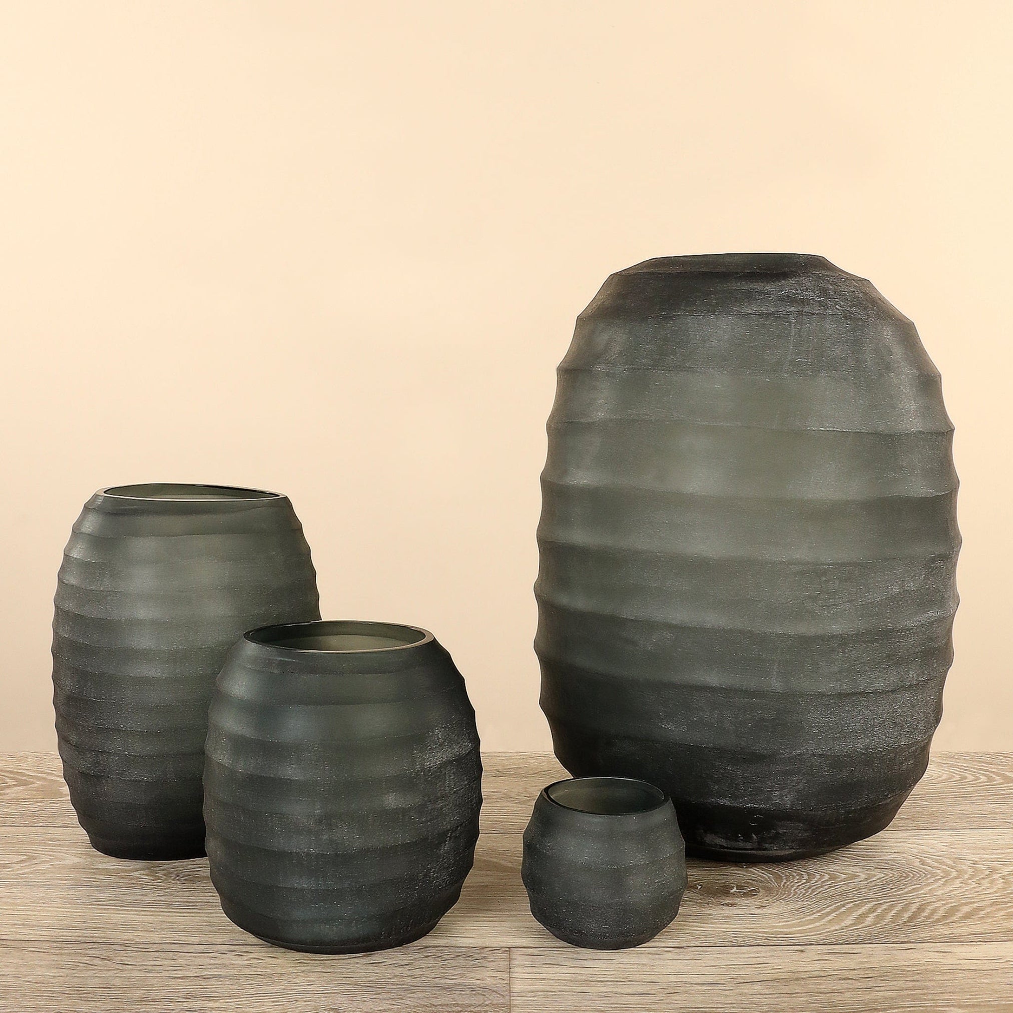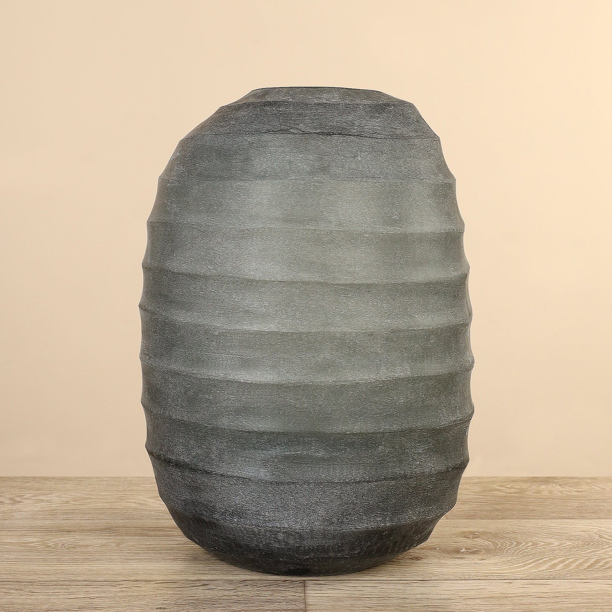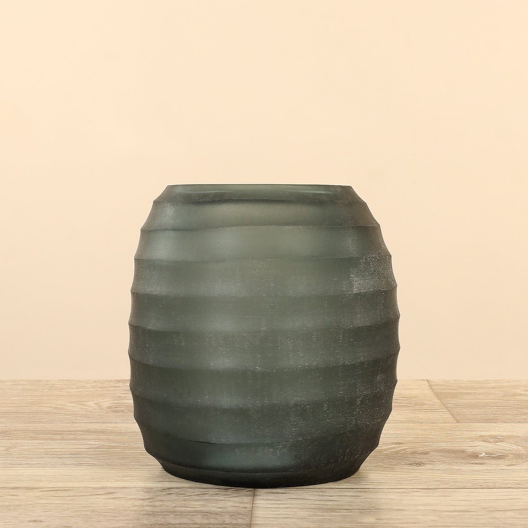 Beautiful as a decorative object this Handblown Glass Vase is equally stunning displaying artificial or real flowers. Crafted with a versatile smoky finish with horizontal ribbing, this elegant glass vase is a wonderful way to bring color and texture into a decorating aesthetic.