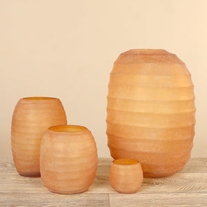 Beautiful as a decorative object this Handblown Glass Vase is equally stunning displaying artificial or real flowers. Crafted with a cheerful yellow finish with horizontal ribbing, this elegant glass vase is a wonderful way to bring color and texture into a decorating aesthetic.
