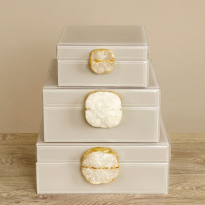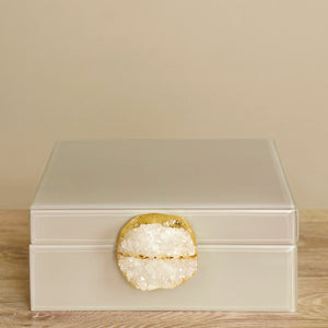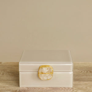 Store your cherished trinkets in a jewelry box as stunning as they are. This enchanting mushroom cream jewelry box combines aesthetics with functionality, featuring a unique geode closure that sets it apart. Whether you choose to display it on a shelf or grace your bathroom counter, it effortlessly provides convenient storage for your valuables.