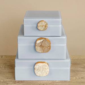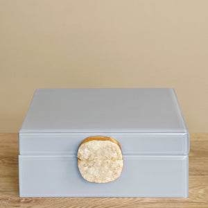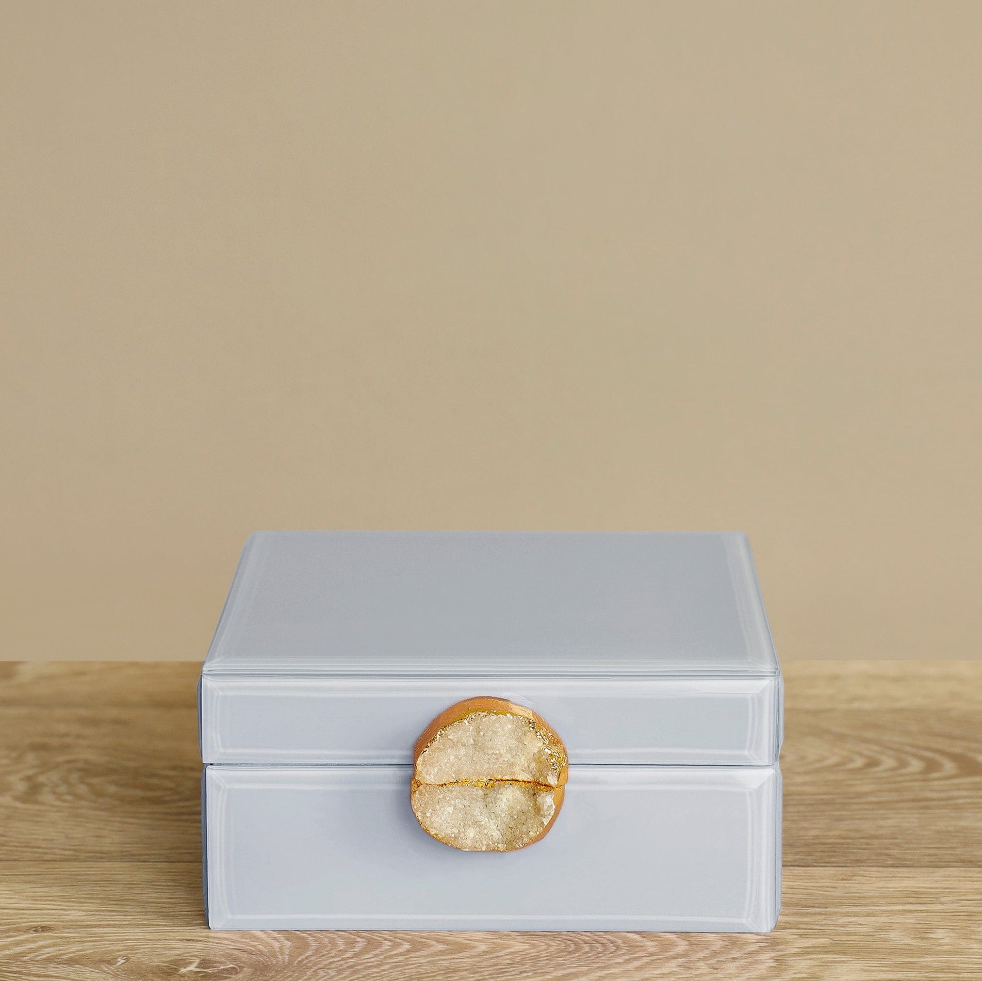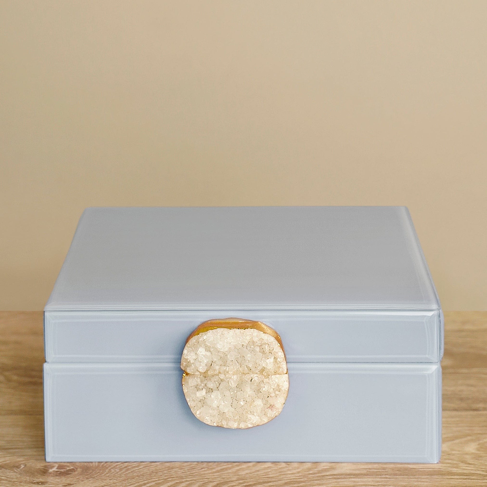 Store your cherished trinkets in a jewelry box as stunning as they are. This enchanting baby purple jewelry box combines aesthetics with functionality, featuring a unique geode closure that sets it apart. Whether you choose to display it on a shelf or grace your bathroom counter, it effortlessly provides convenient storage for your valuables.