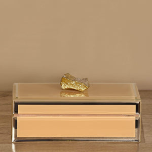 Protect your precious small valuables with style in this elegant glass jewelry box. Crafted in a delightful pale yellow hue this trinket box boasts clean, contemporary lines and a distinctive gold-finished stone knob, adding a touch of sophistication to its sleek design.