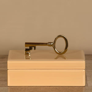 Protect your treasures with both style and security using this sophisticated jewelry box. Designed in a pretty shade of pale yellow, this elegant jewelry box boasts a distinctive gold-finished key that serves as a unique handle for effortlessly opening and closing it.