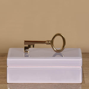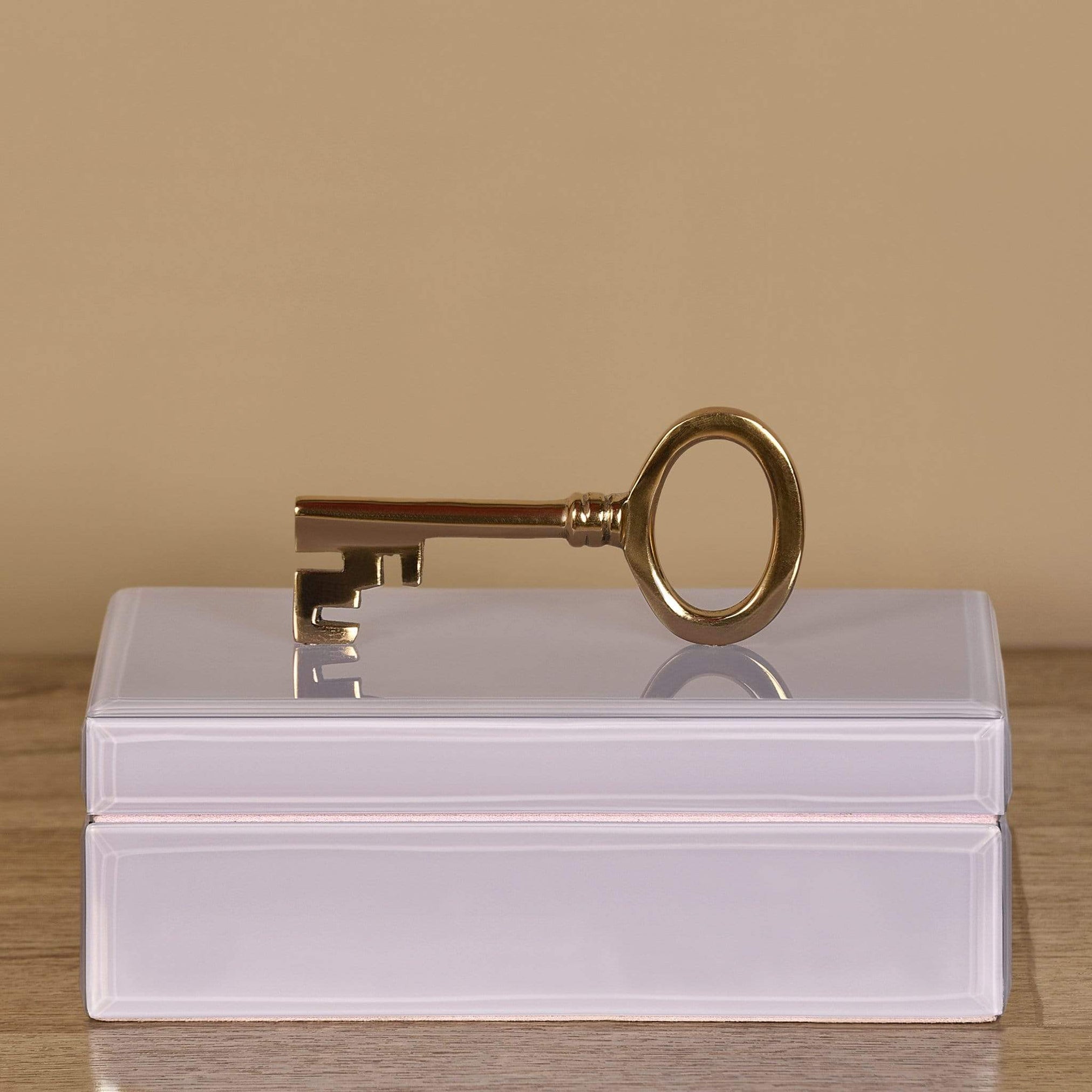 Protect your treasures with both style and security using this sophisticated jewelry box. Designed in a pretty shade of baby purple, this elegant jewelry box boasts a distinctive gold-finished key that serves as a unique handle for effortlessly opening and closing it.