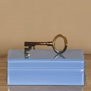 Protect your treasures with both style and security using this sophisticated jewelry box. Designed in a pretty shade of blue, this elegant jewelry box boasts a distinctive gold-finished key that serves as a unique handle for effortlessly opening and closing it.