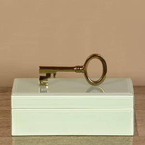 Protect your treasures with both style and security using this sophisticated jewelry box. Designed in a pretty shade of mint green, this elegant jewelry box boasts a distinctive gold-finished key that serves as a unique handle for effortlessly opening and closing it.