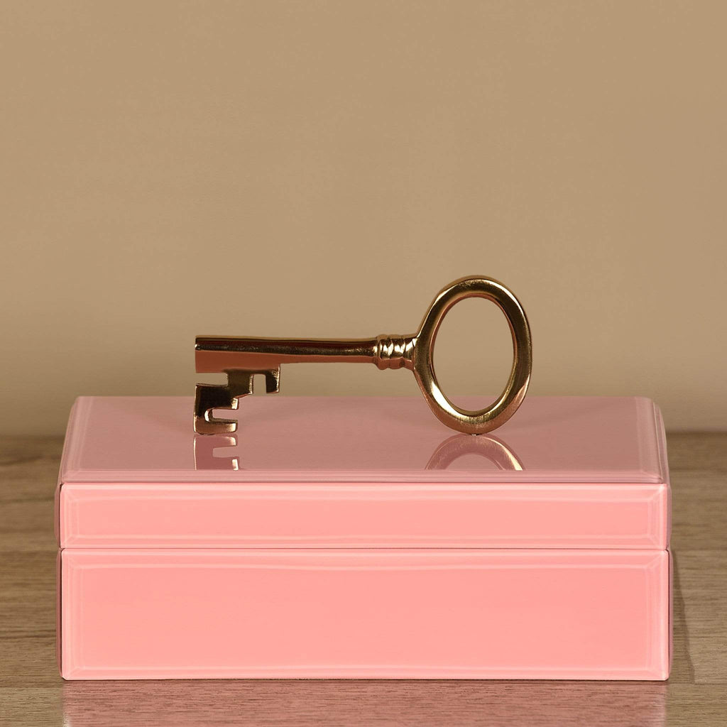Protect your treasures with both style and security using this sophisticated jewelry box. Designed in a pretty shade of baby pink, this elegant jewelry box boasts a distinctive gold-finished key that serves as a unique handle for effortlessly opening and closing it.